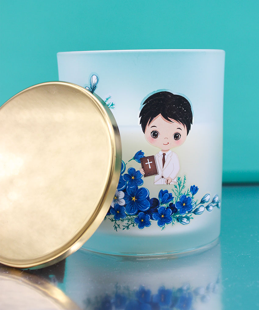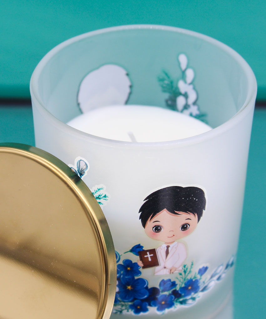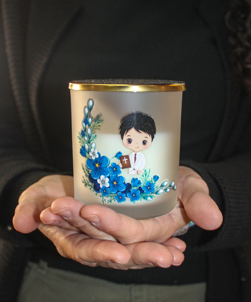 Le candele profumate sono sempre apprezzate come bomboniera perché rappresentano luce, purezza e speranza. Il design elegante con l’immagine del bambino la rende un dono perfetto per parenti e amici, un modo dolce per conservare il ricordo di questo giorno speciale.