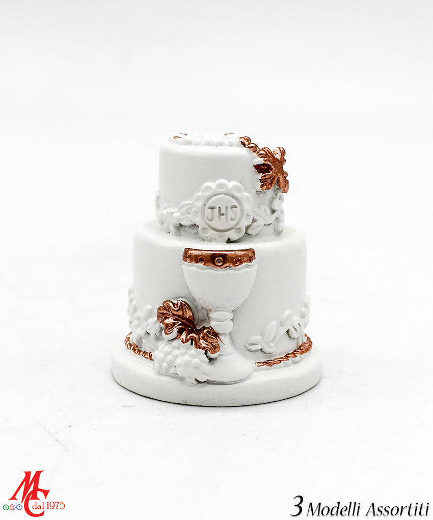 Celebra la Prima Comunione con un tocco di dolcezza e significato grazie alla Bomboniera Comunione: Tortine con Simboli Comunione. Queste deliziose bomboniere in resina, alte 5 cm, sono disponibili in tre modelli assortiti, ognuno decorato con simboli che richiamano la sacralità dell’evento.