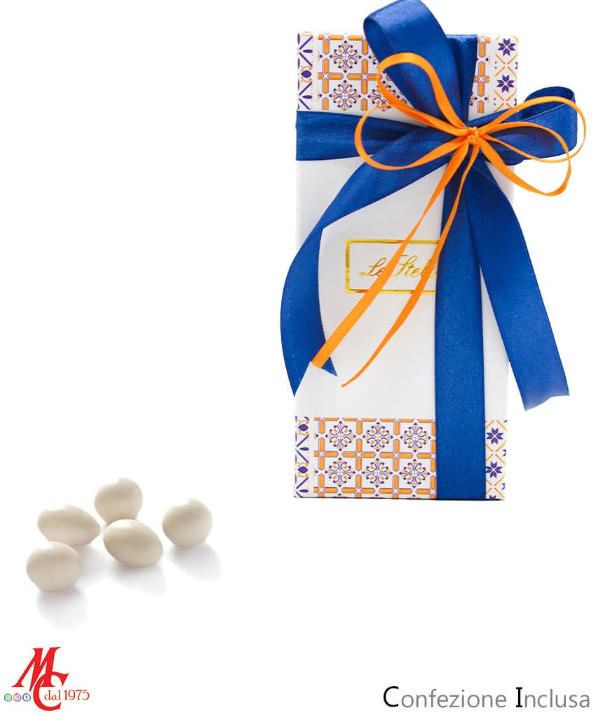- 5 confetti Bianchi al Cioccolato inseriti in tulle con nastrino di raso ( stesso colore confezione esterna)