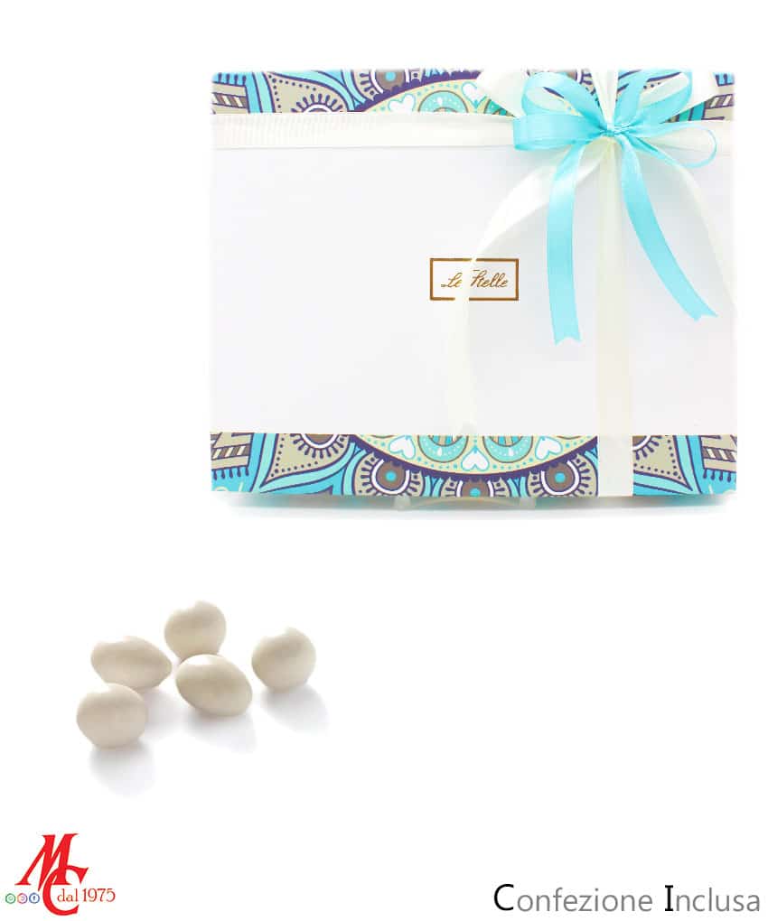 - 5 confetti Bianchi al Cioccolato inseriti in tulle con nastrino di raso ( stesso colore confezione esterna)