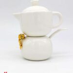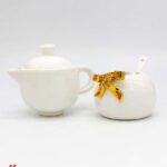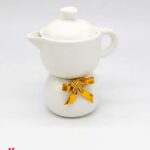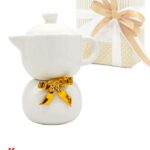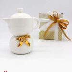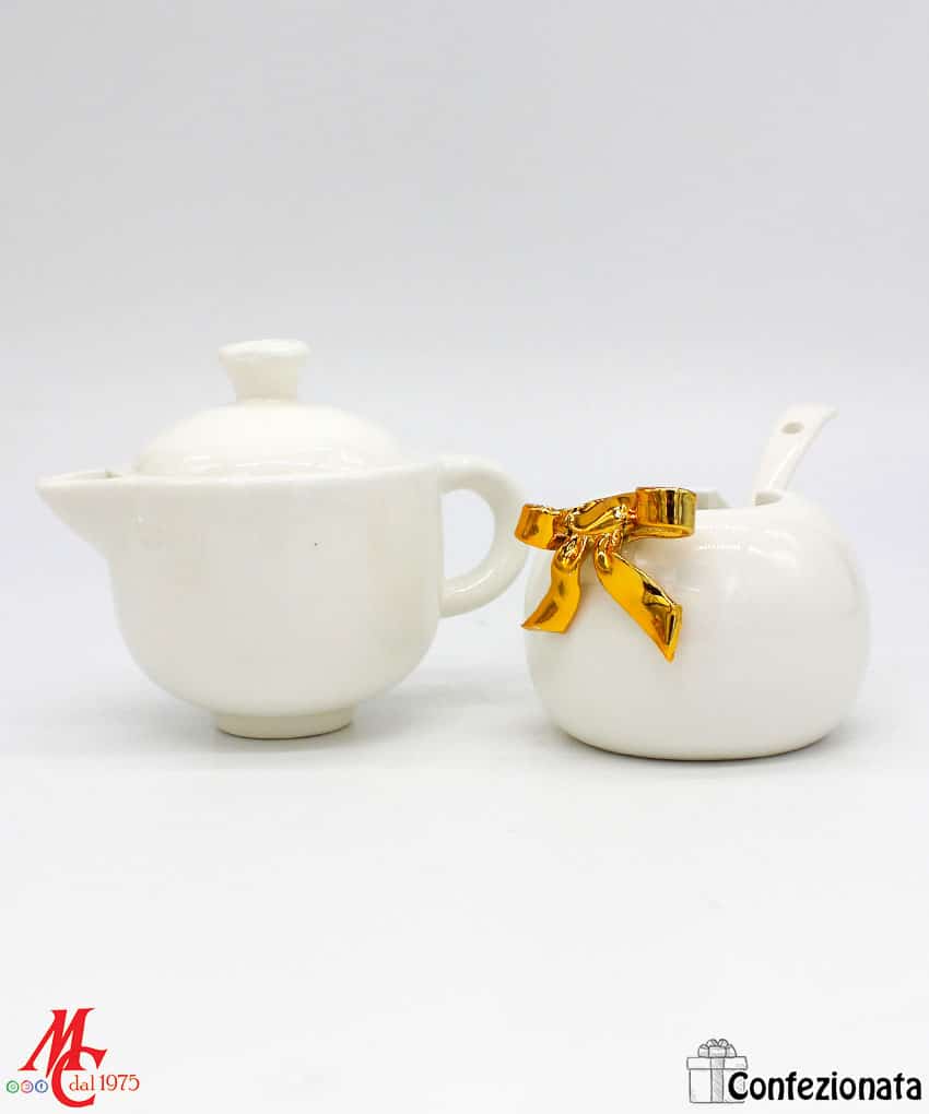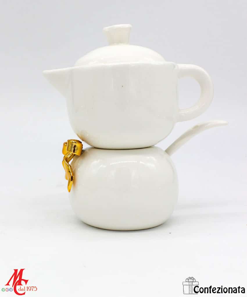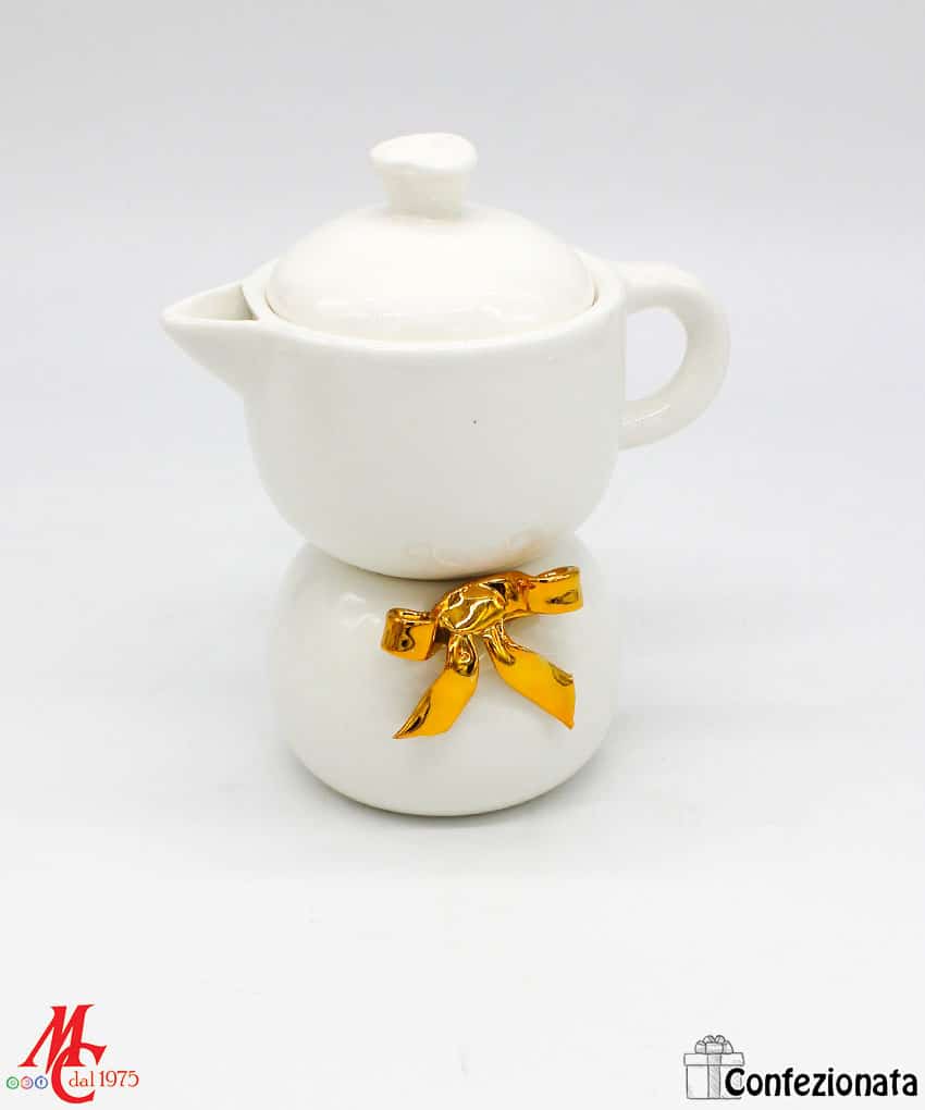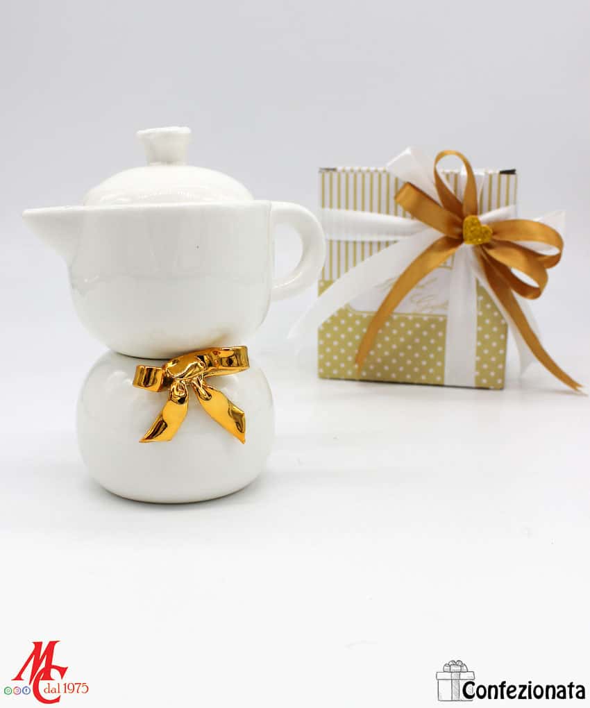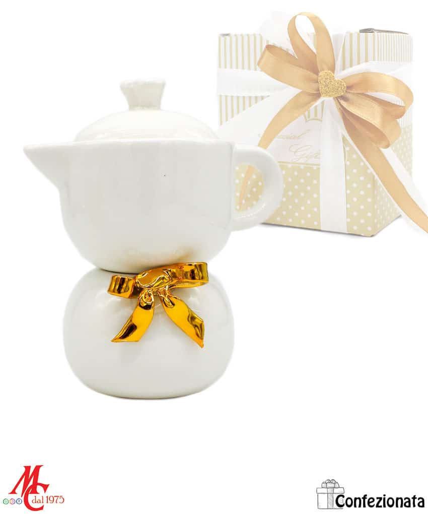 Bomboniera Confezionata – Zuccheriera forma Caffettiera – Bianca fiocco Oro