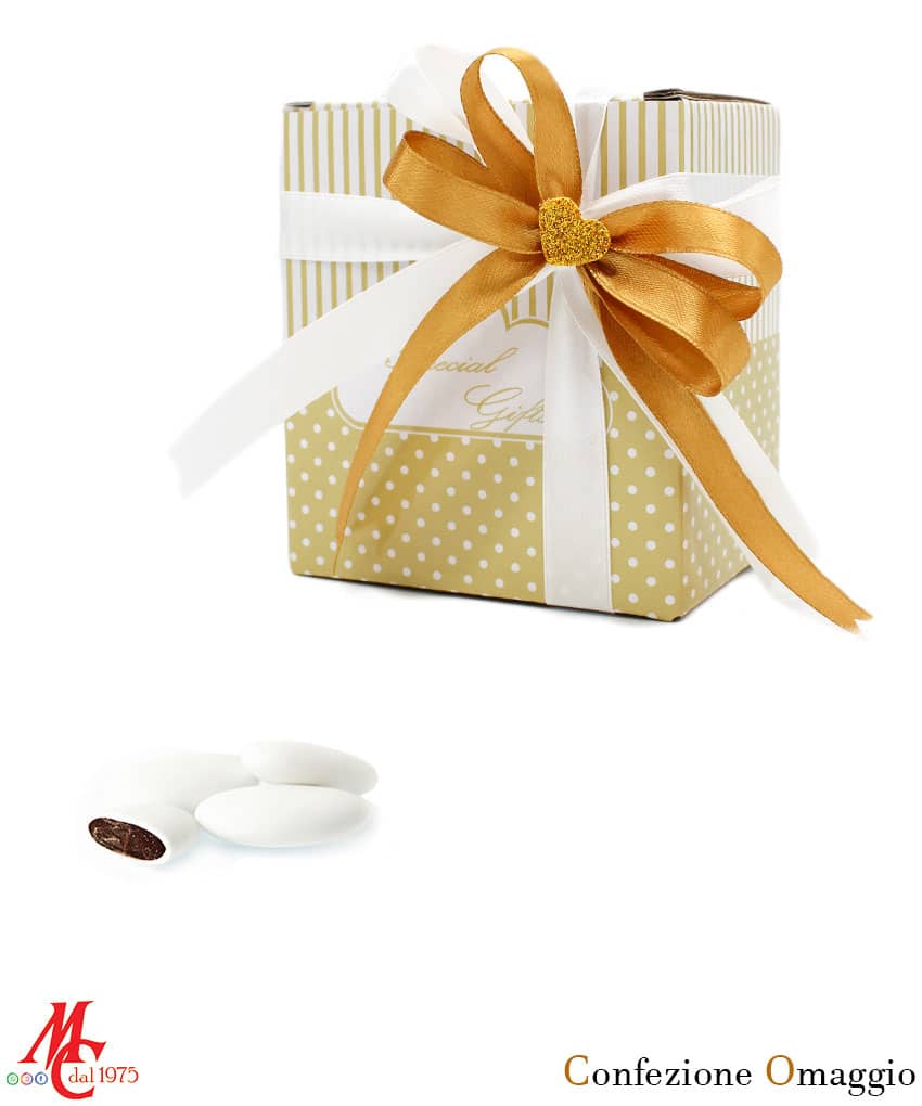 - 5 confetti Bianchi al Cioccolato inseriti in tulle con nastrino di raso ( stesso colore confezione esterna)