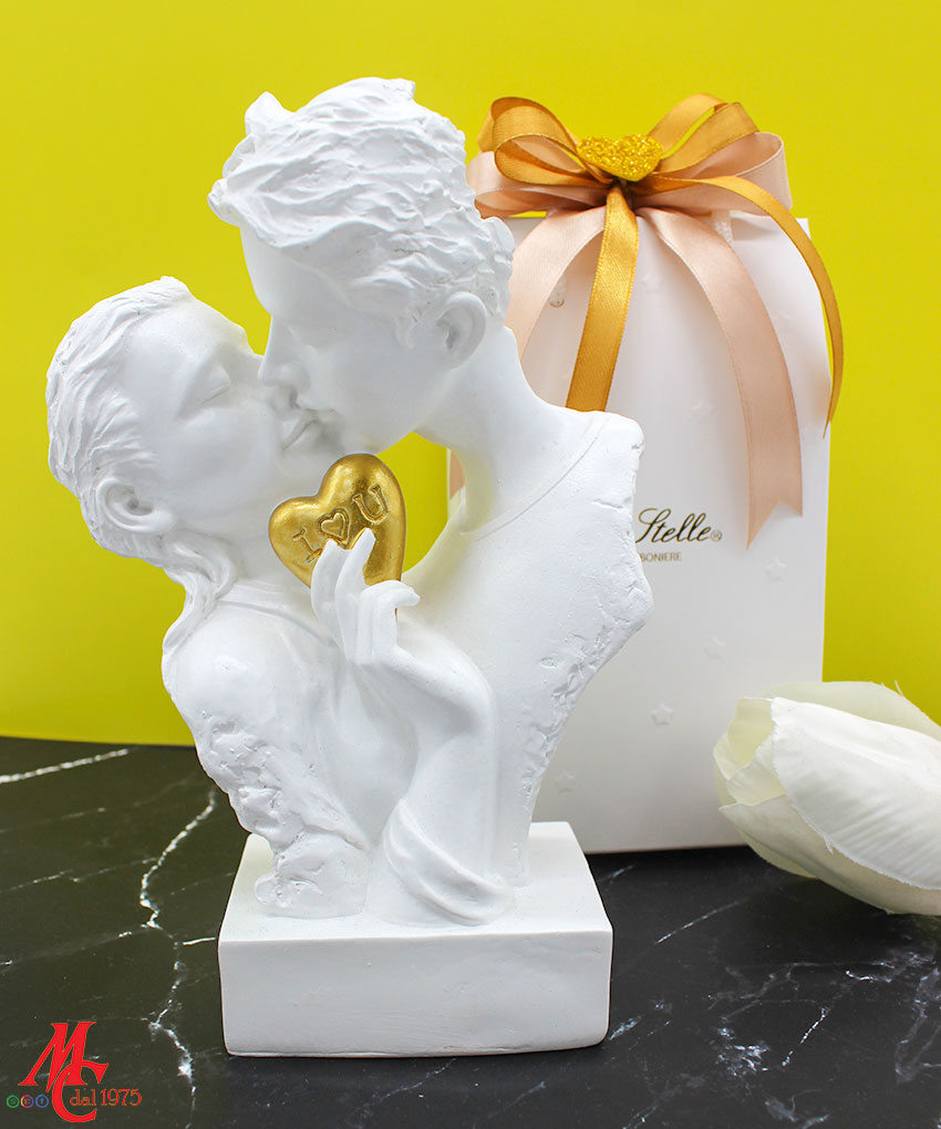 Bomboniera Coppia Bacio in Resina – Confezione con Astuccio Shopper Inclusa