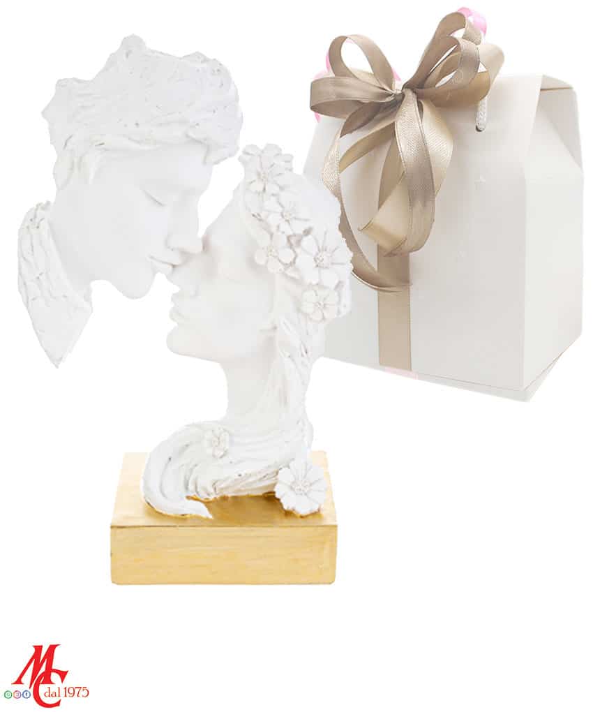 Bomboniera Coppia in Resina Bianca con Base Oro – Completa di Confezione