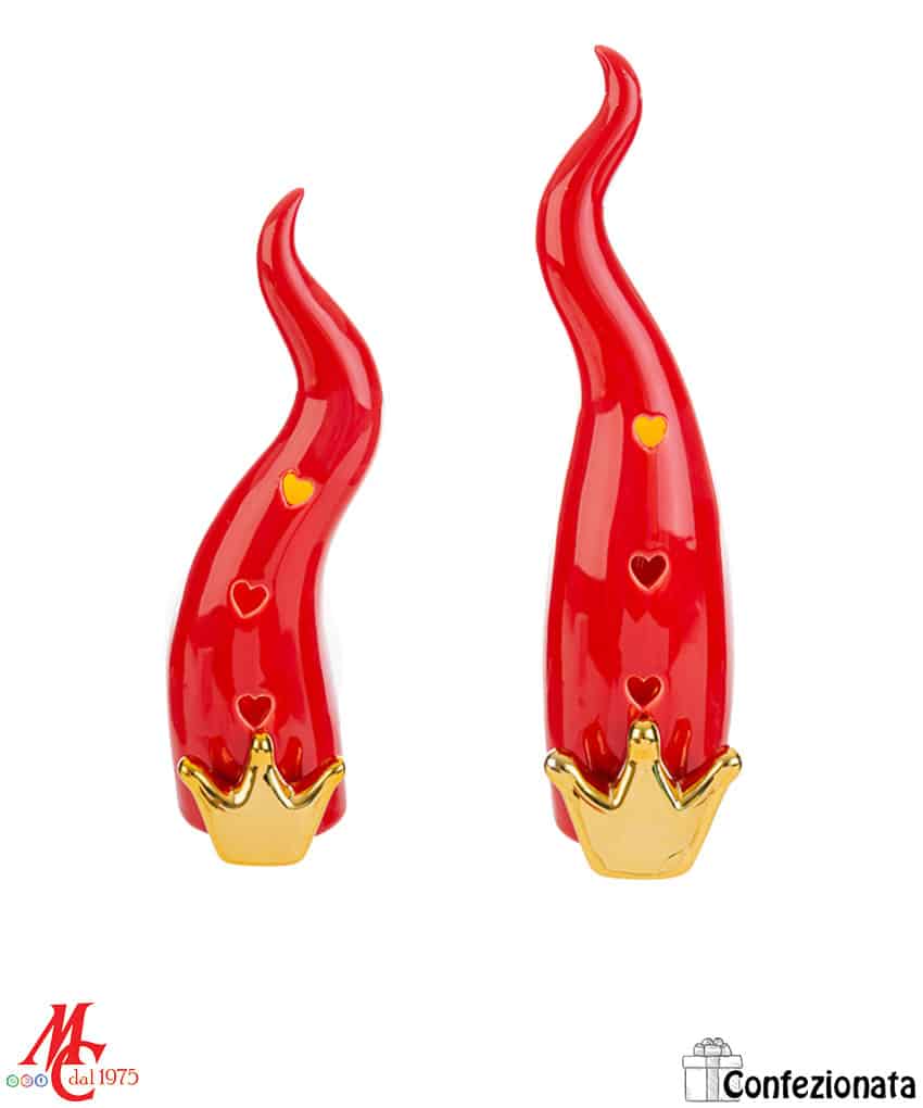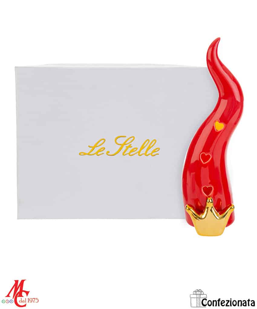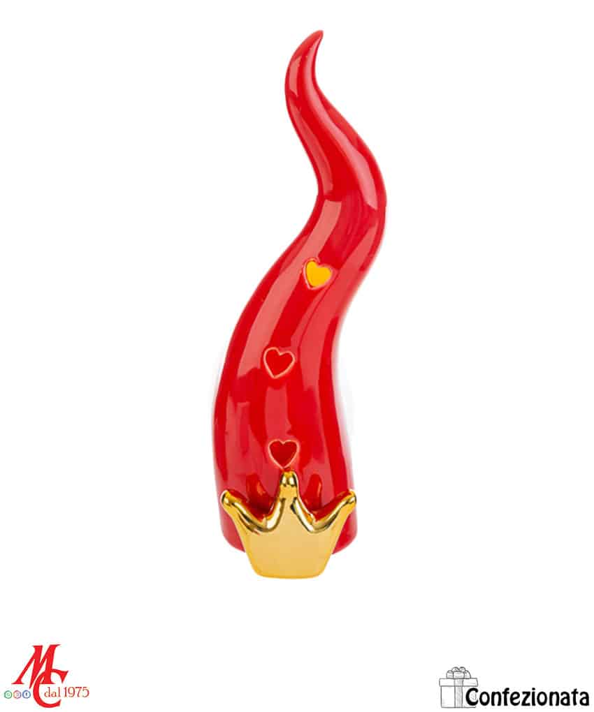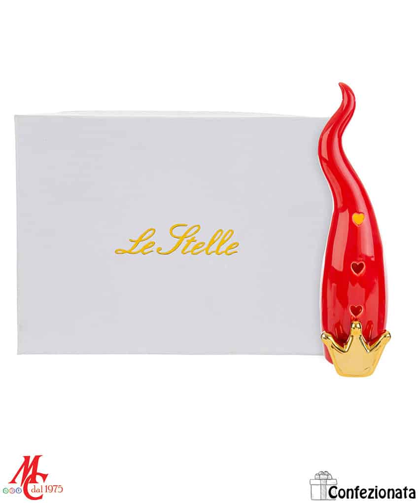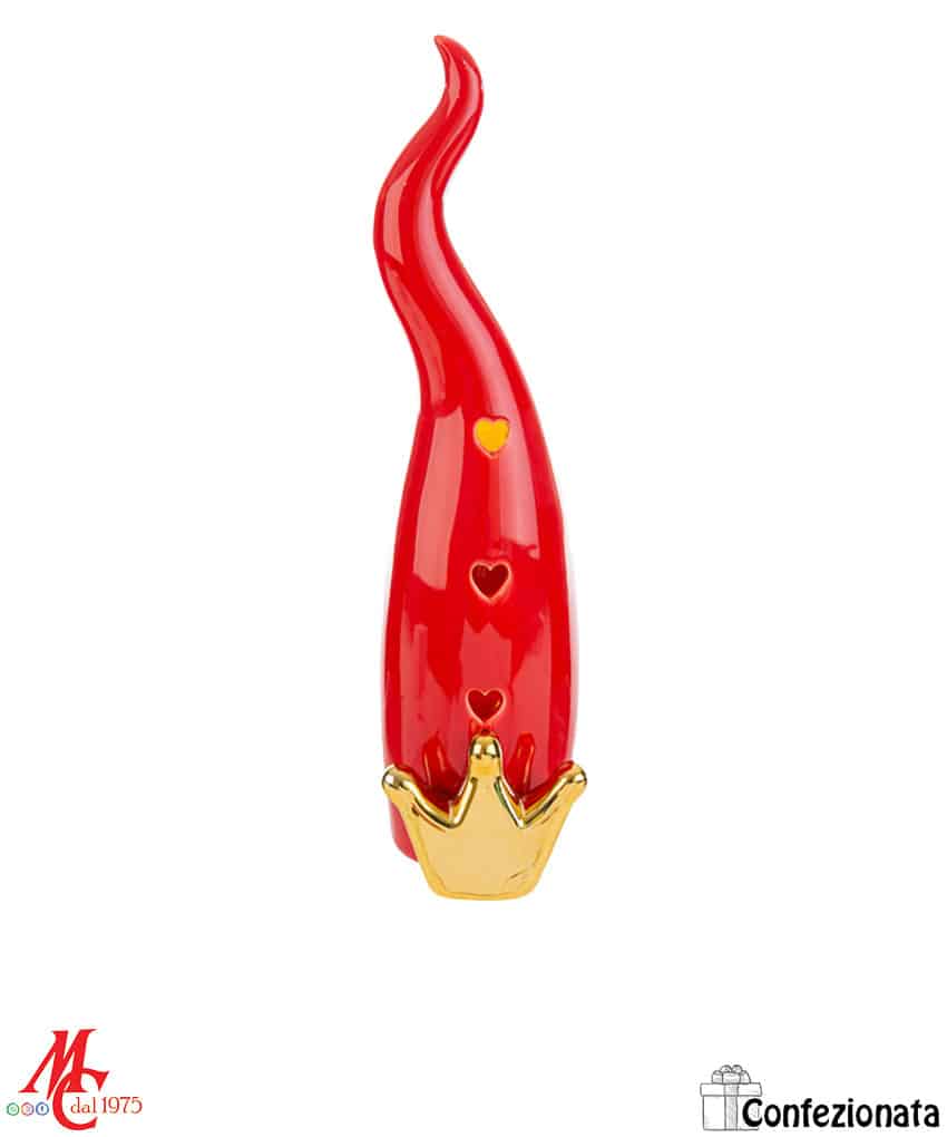 Bomboniera Corno Rosso con Corona Oro in Porcellana con Luce LED