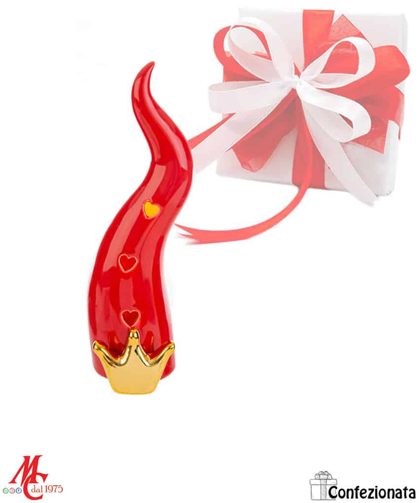 • Design: Corno rosso con corona dorata, simbolo tradizionale di fortuna e prestigio