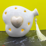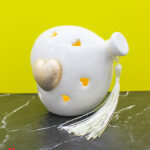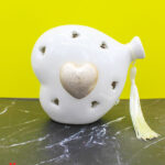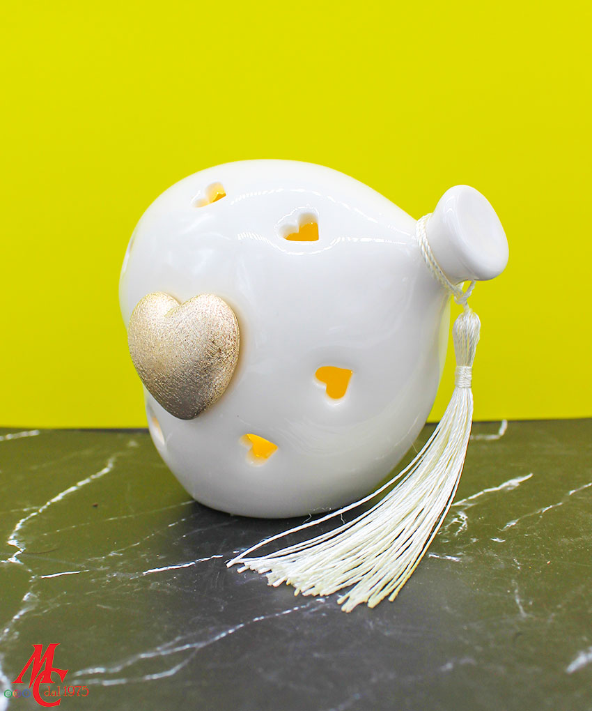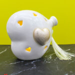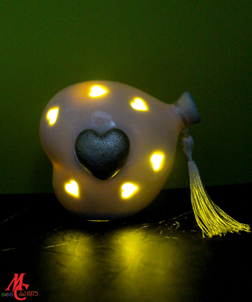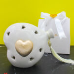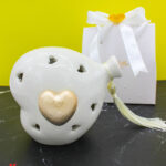 Un tocco di luce e raffinatezza per celebrare i momenti più teneri. Questa bomboniera a forma di cuore palloncino in porcellana bianca, con luce LED integrata e dettaglio dorato satinato, è l’idea perfetta per eventi speciali come nascite, battesimi o primi compleanni.