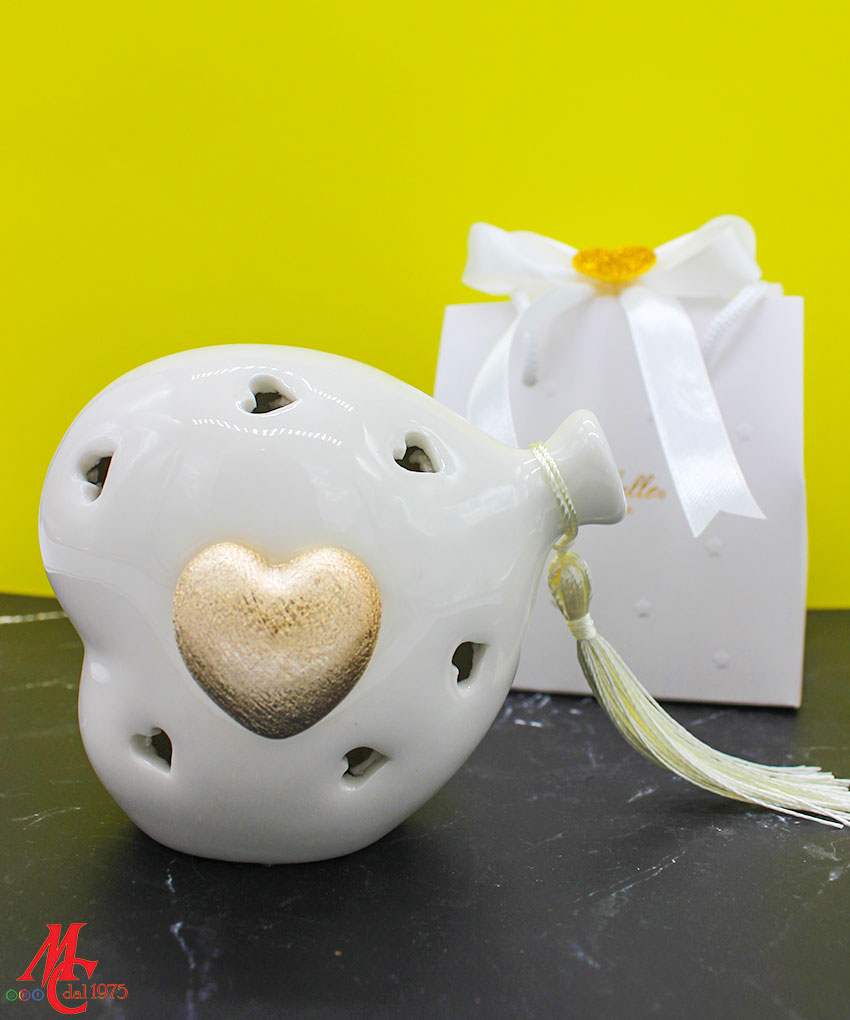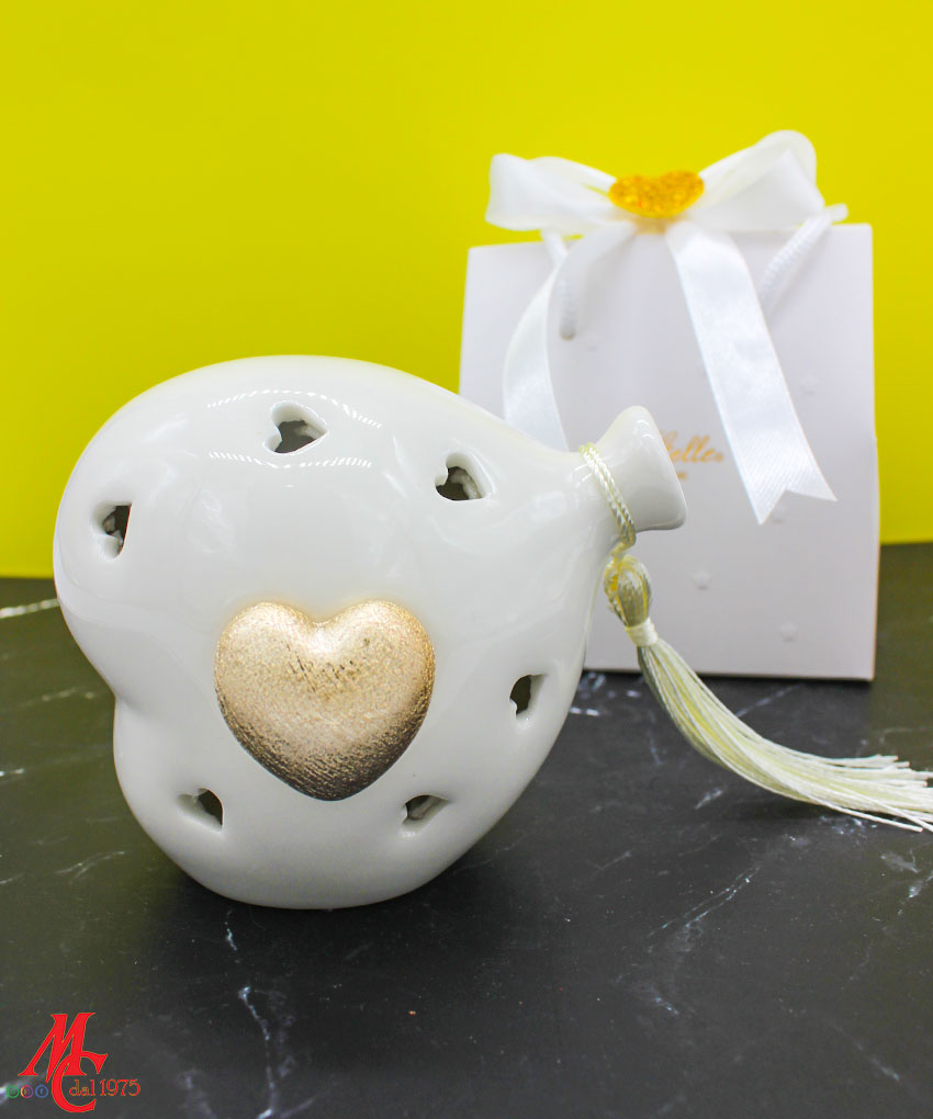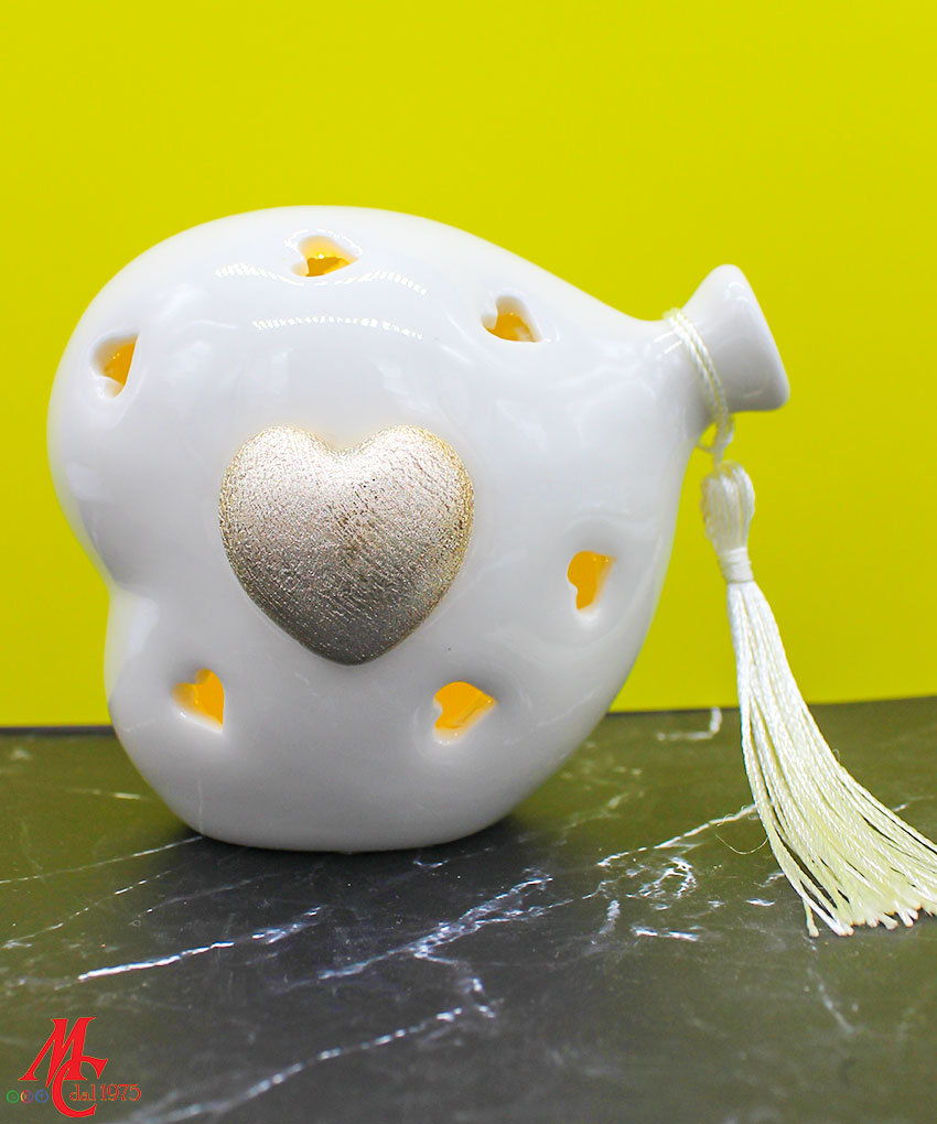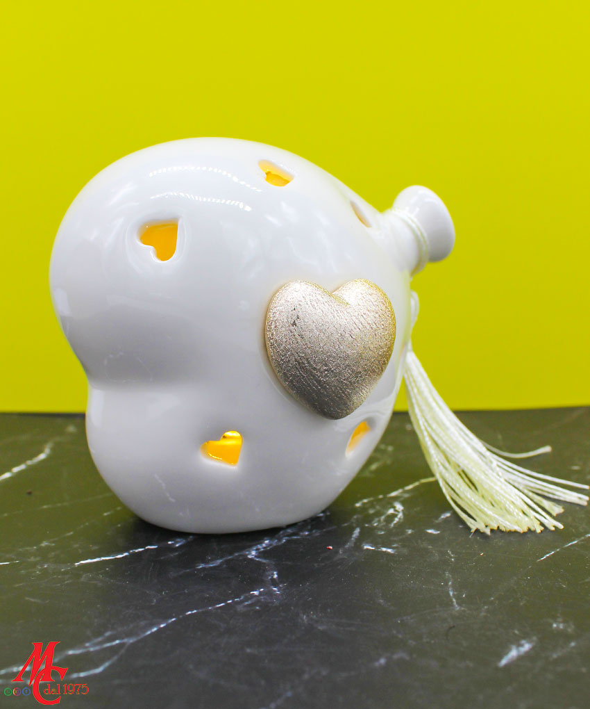 Bomboniera Cuore Balloon LED Oro in Porcellana