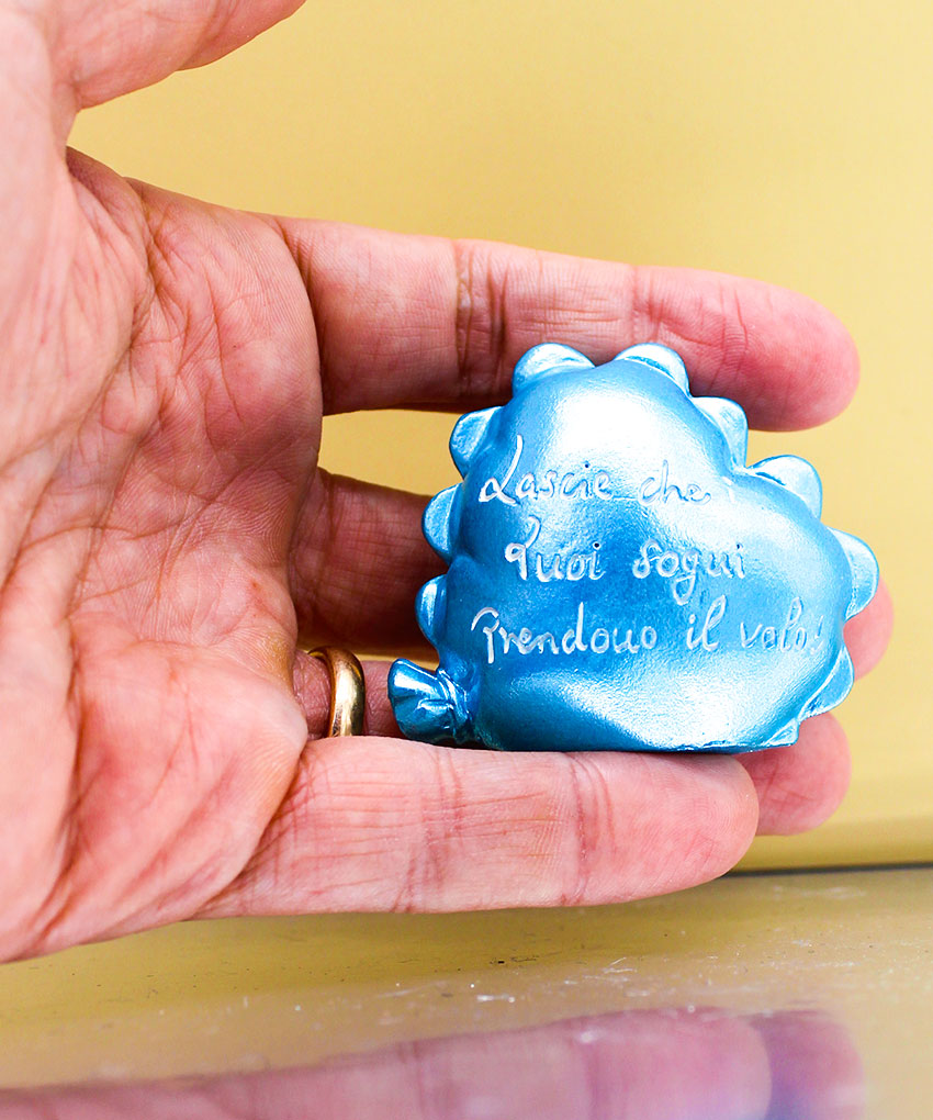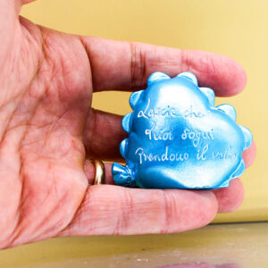 Con dimensioni di 6 cm x 5 cm, è compatta ma ben visibile, perfetta come ricordo decorativo da esporre in cameretta o in qualsiasi angolo della casa.