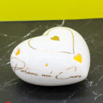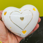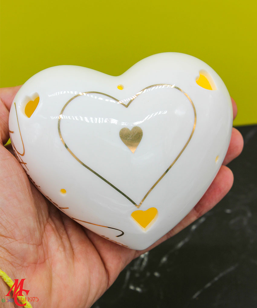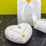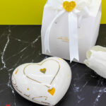 Bomboniera Cuore Porcellana LED Bianco con Scritta Oro – Confezione Inclusa