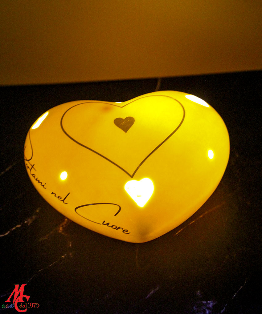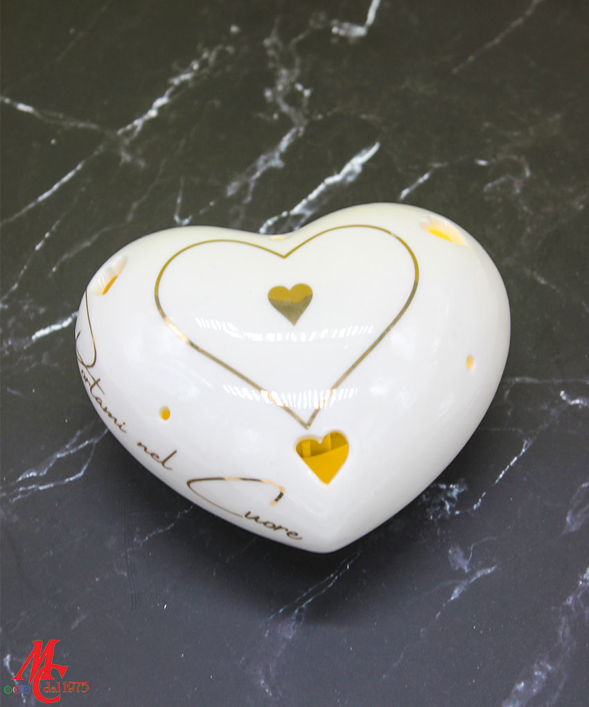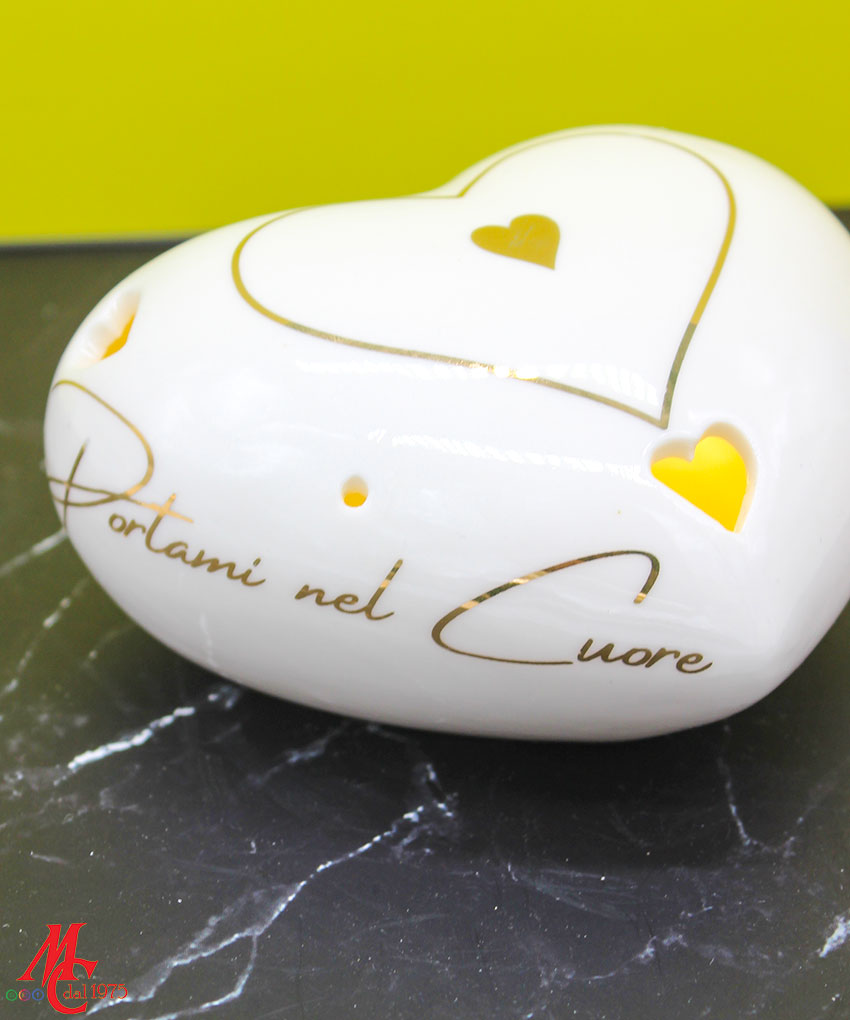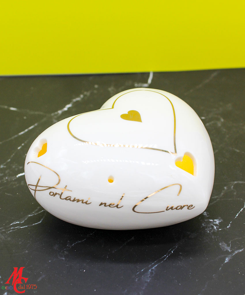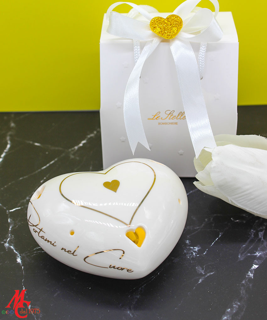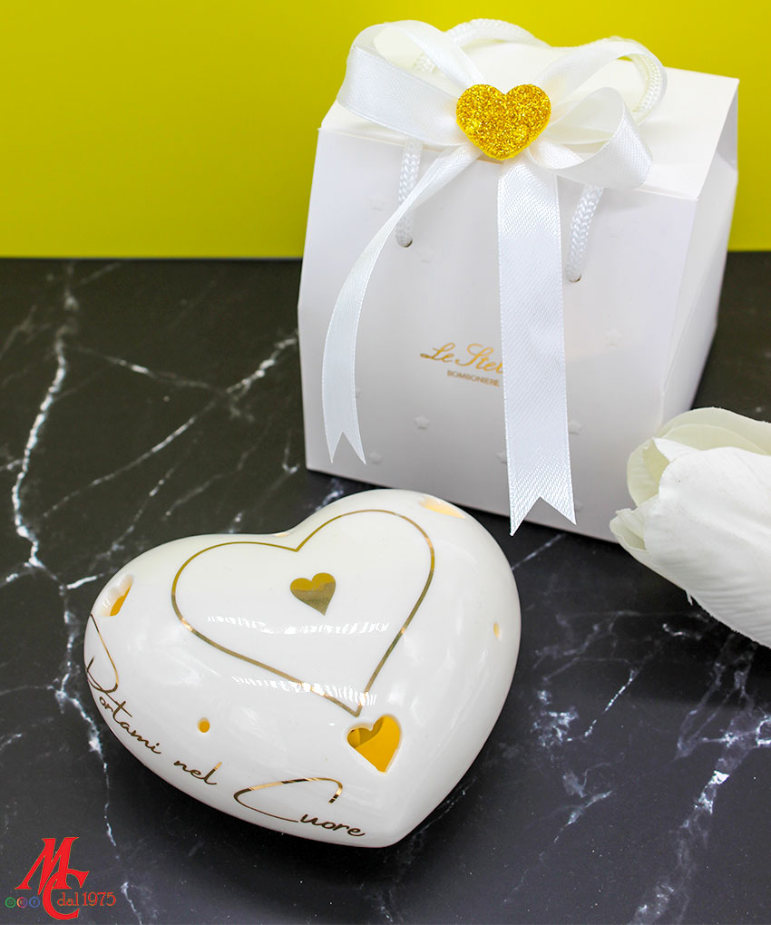 Bomboniera Cuore Porcellana LED Bianco con Scritta Oro