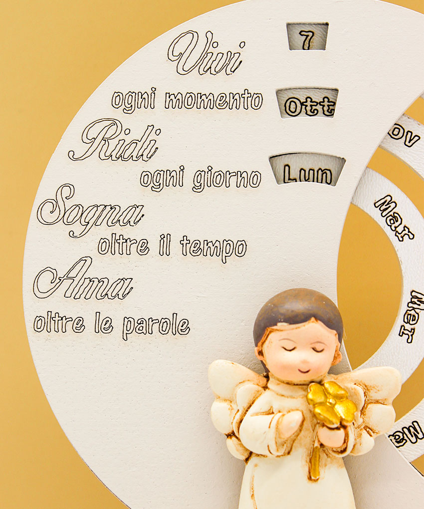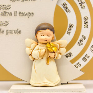 La Bomboniera Datario con Angioletto e frase romantica è una proposta delicata e ricca di significato, ideale per celebrare eventi speciali come battesimi, comunioni, matrimoni e ricorrenze importanti. L’angioletto, simbolo di protezione e dolcezza, abbinato alla frase romantica, rende questo oggetto un ricordo emozionale e senza tempo.