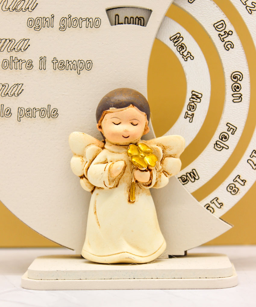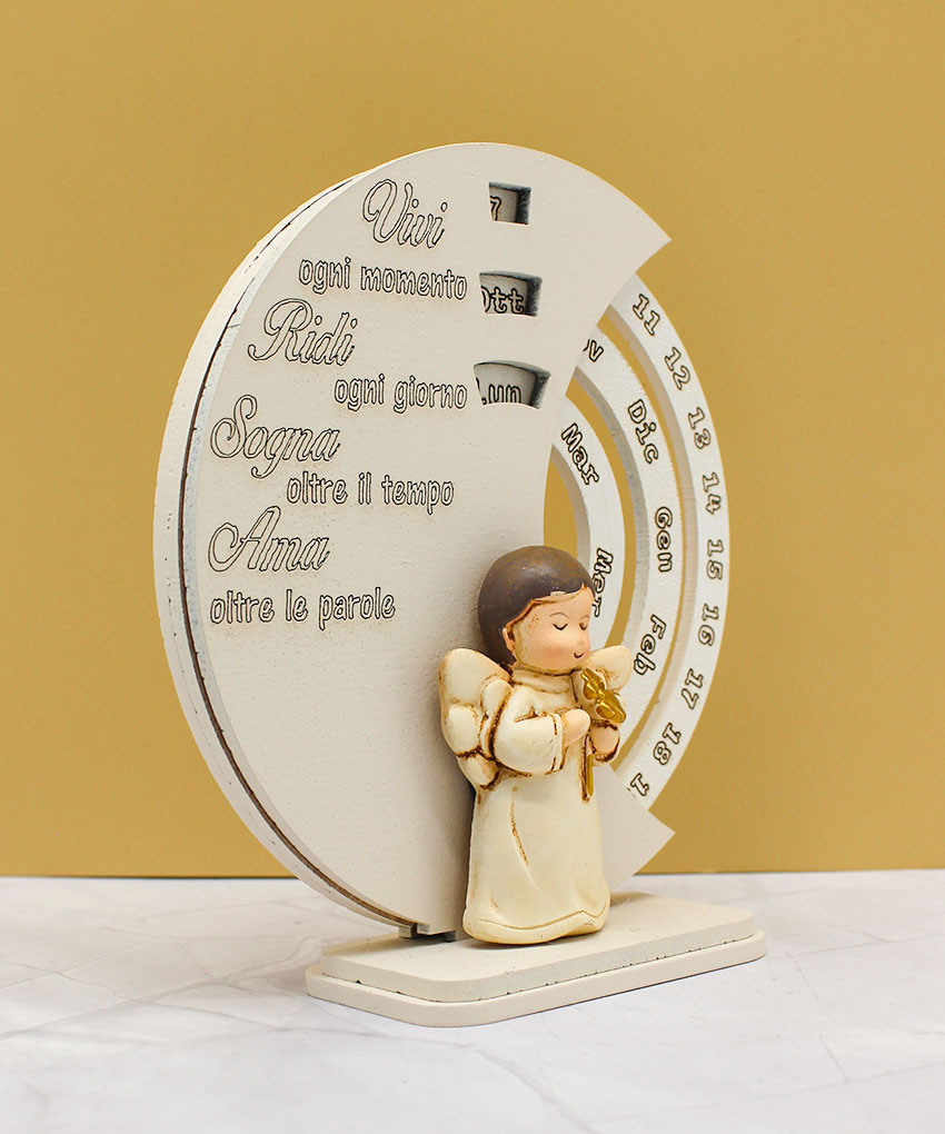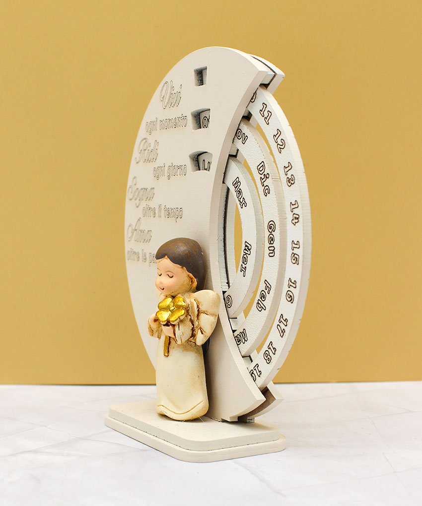 Bomboniera Datario con Angioletto e Frase Romantica colore Sabbia