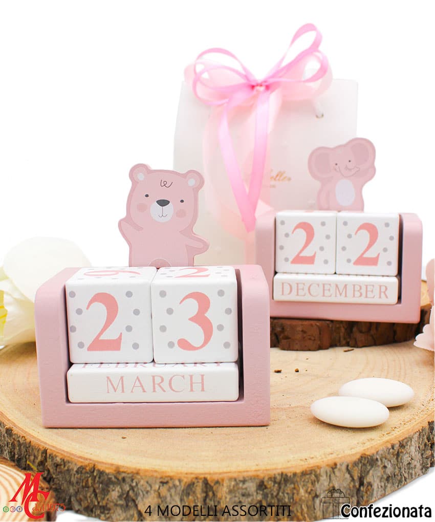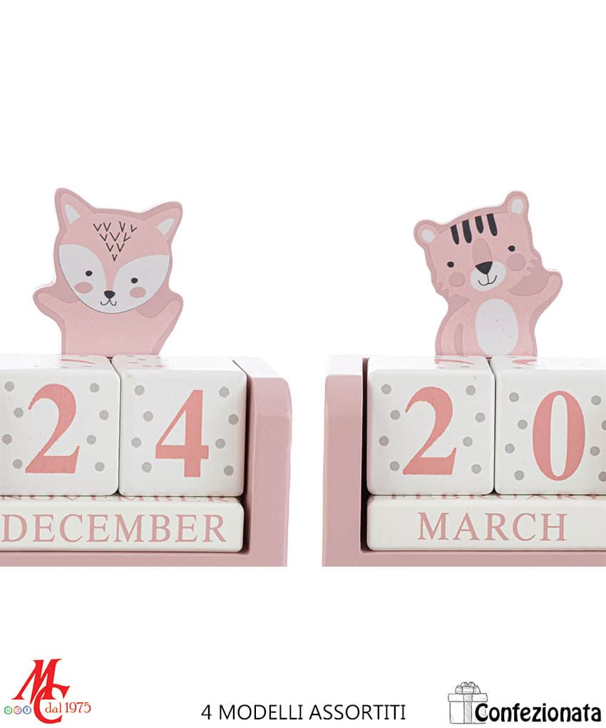 - Modello: Bomboniera Datario Legno Rosa – 4 Animali Assortiti