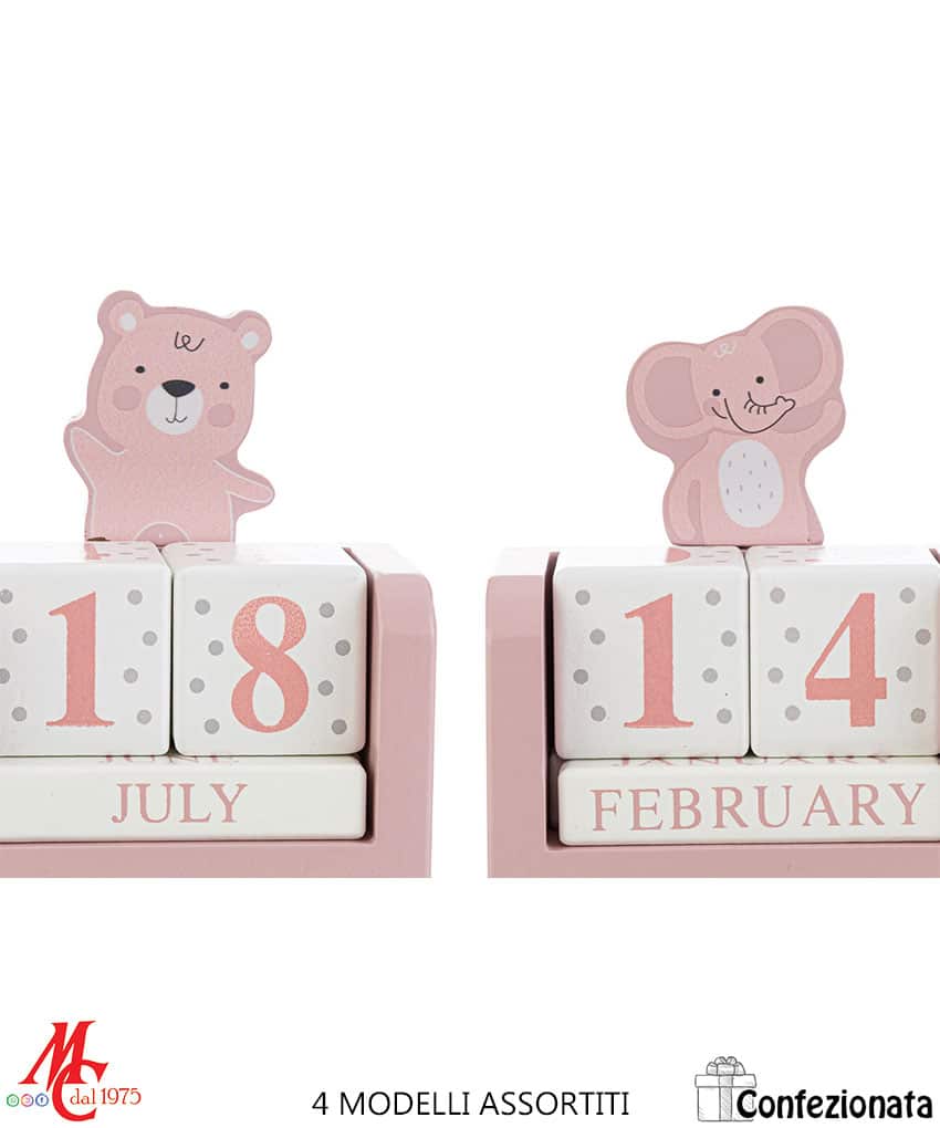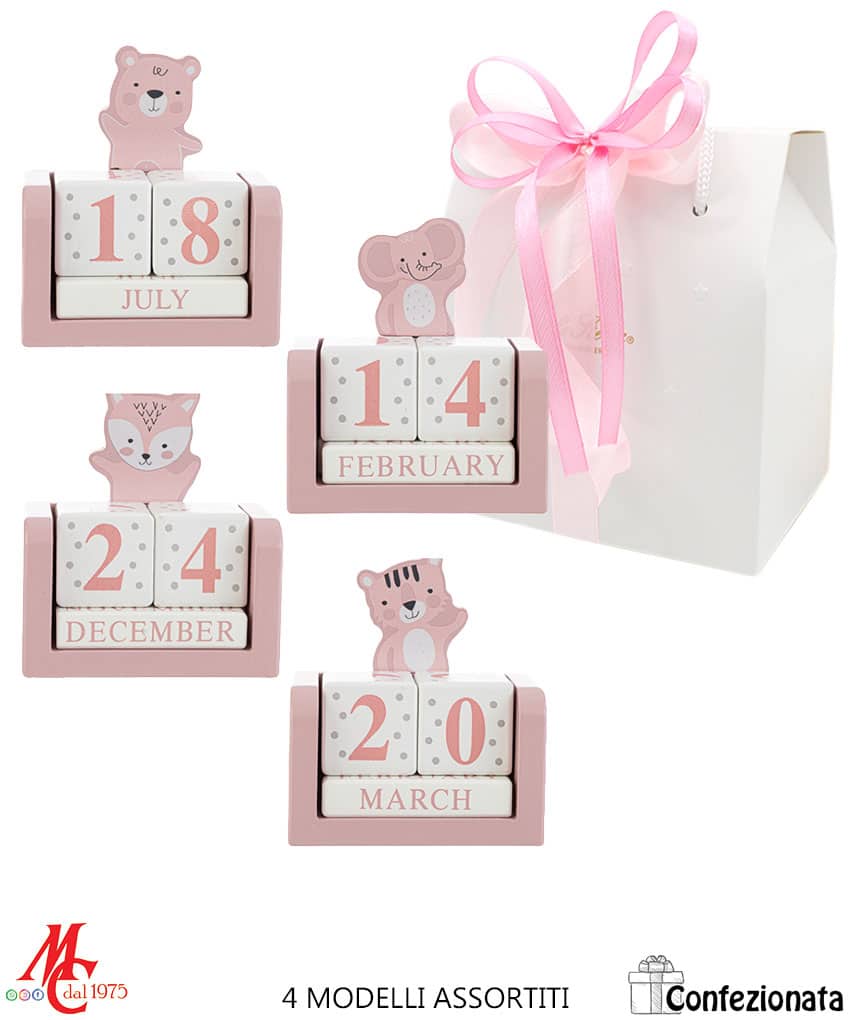 Bomboniera Datario Legno Rosa – 4 Animali Assortiti