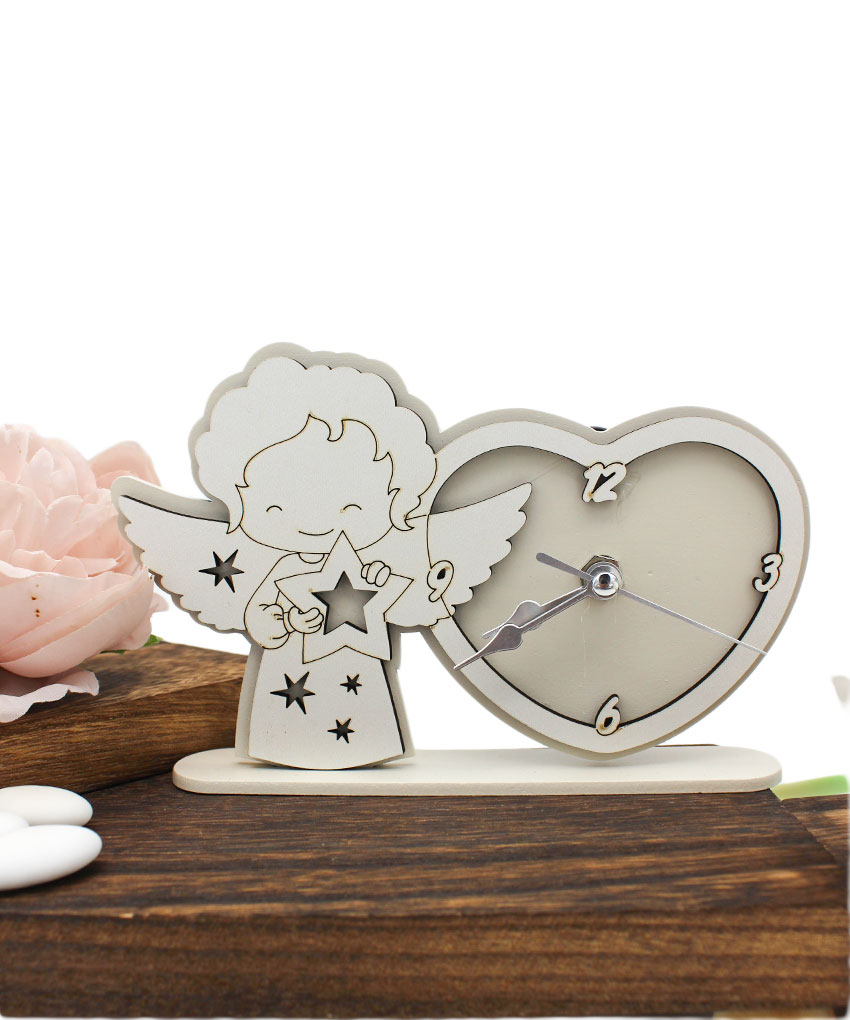 Bomboniera Economica Orologio Angioletto Beige – Legno Intagliato