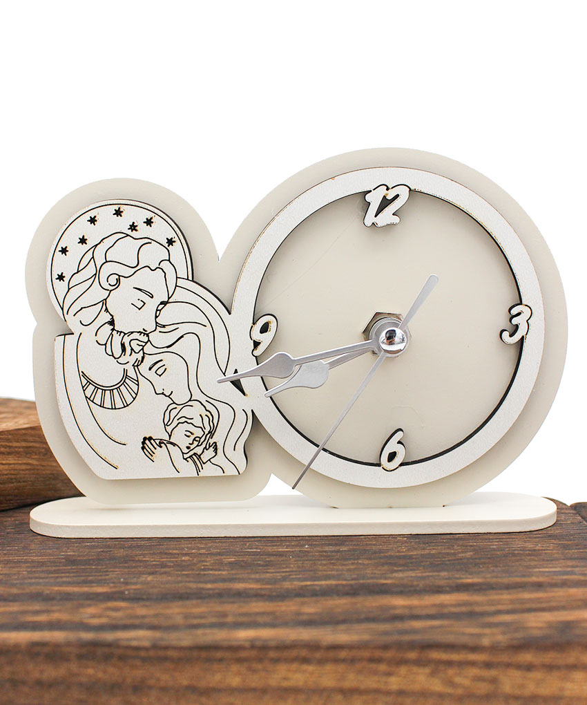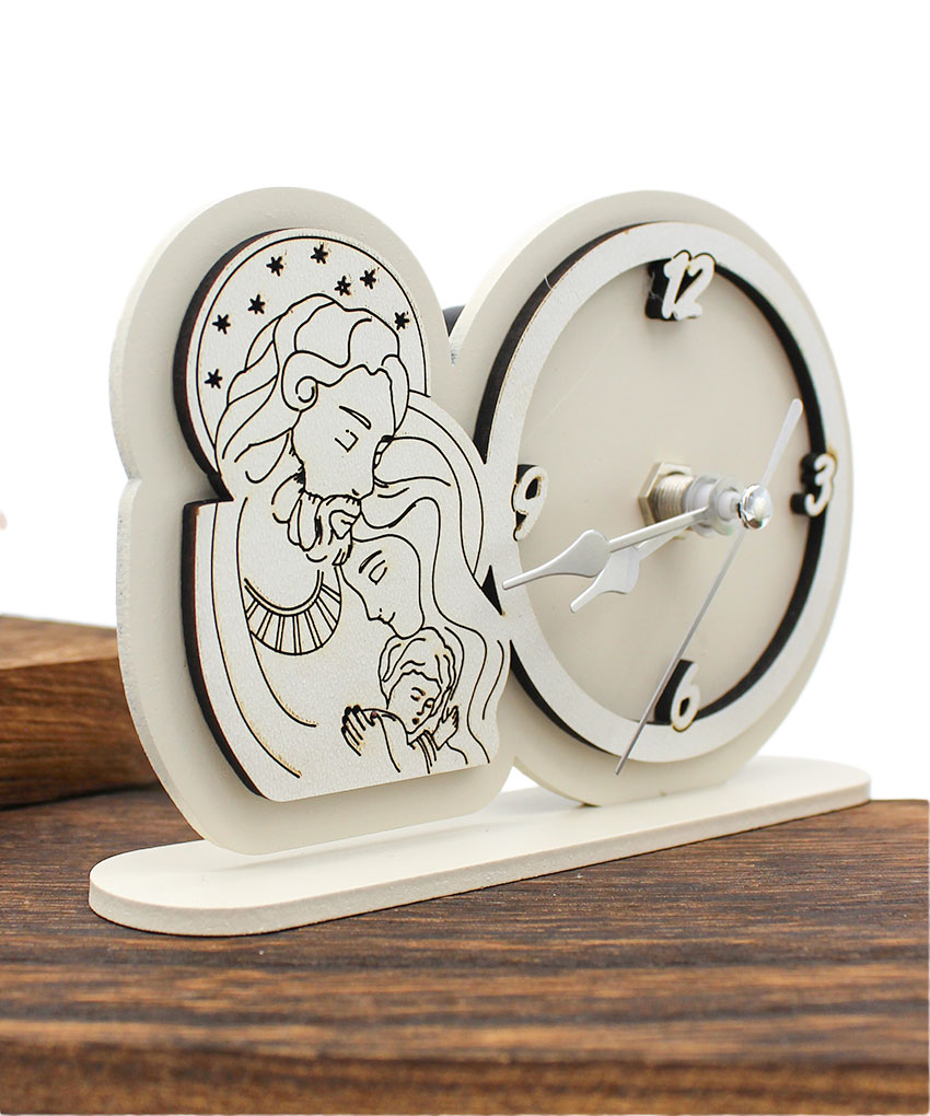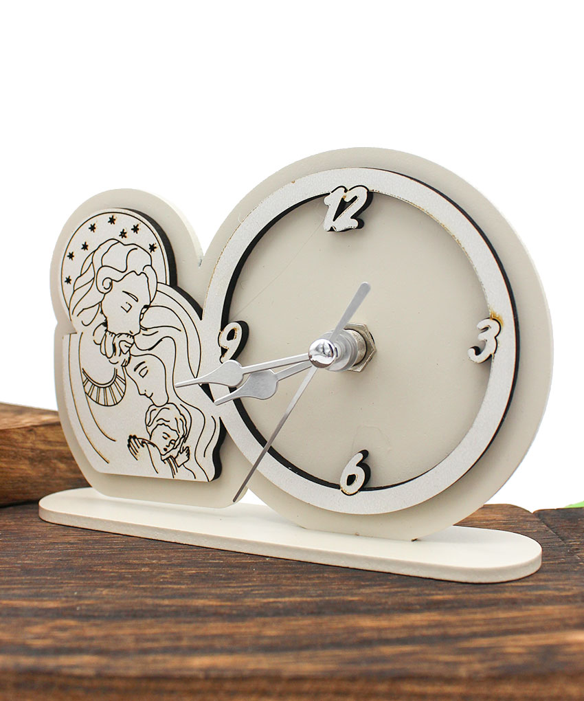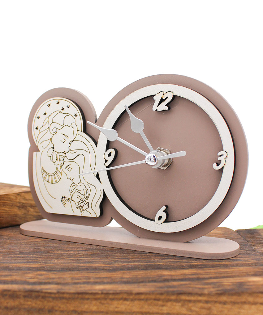 Bomboniera Economica Orologio Tondo Sacra Famiglia – Legno Intagliato Sabbia o Fango