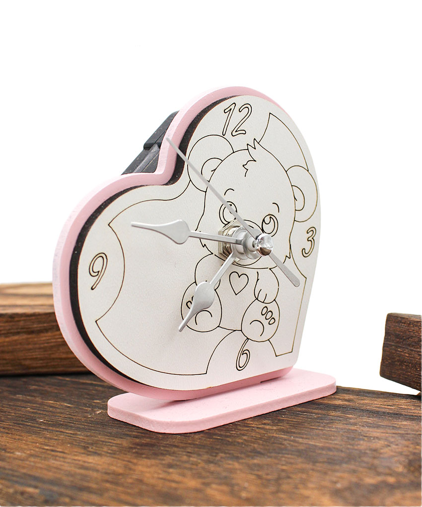 Questo tenerissimo orologio da tavolo a forma di cuore con decoro orsetto è la scelta perfetta per chi desidera un pensiero affettuoso e funzionale senza rinunciare allo stile.
