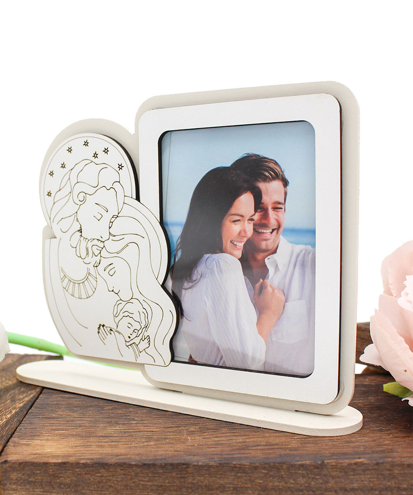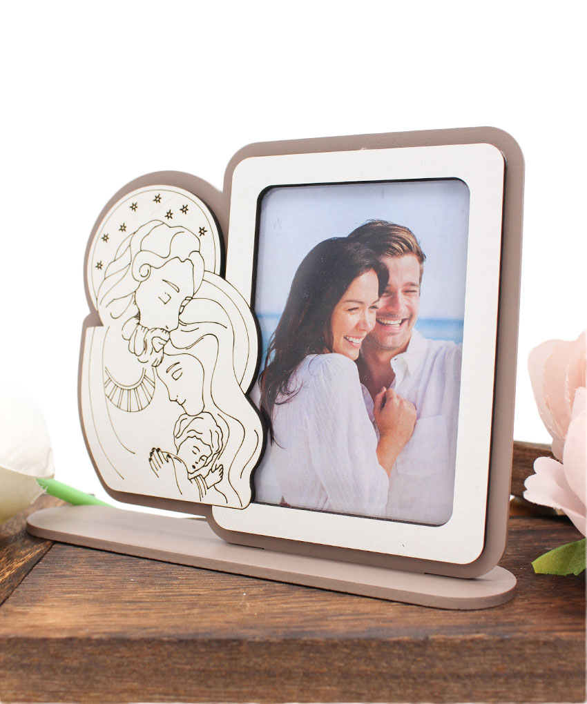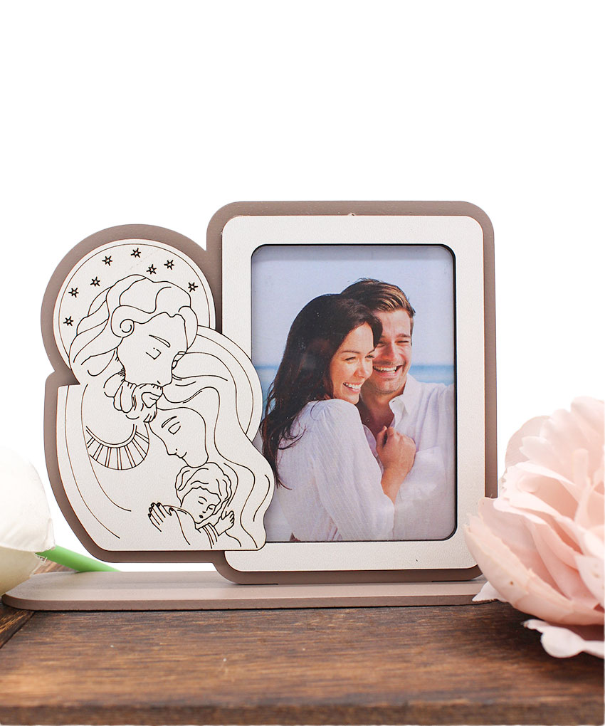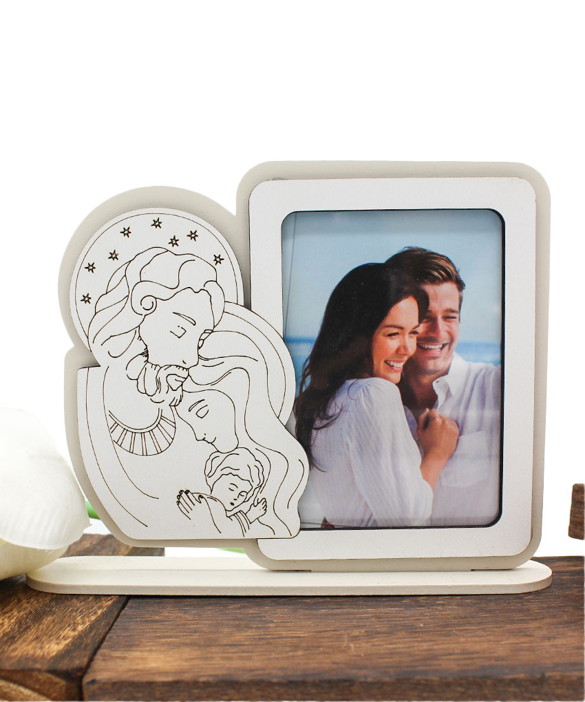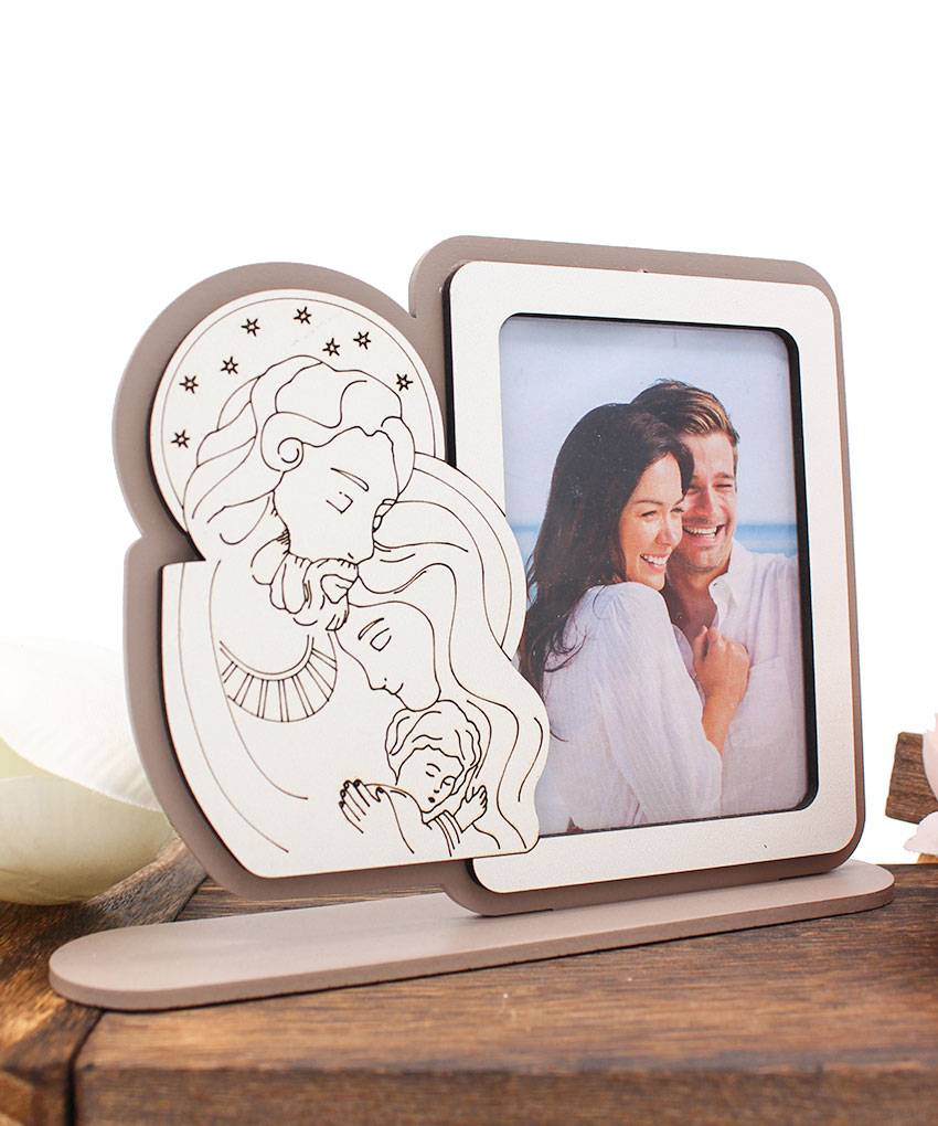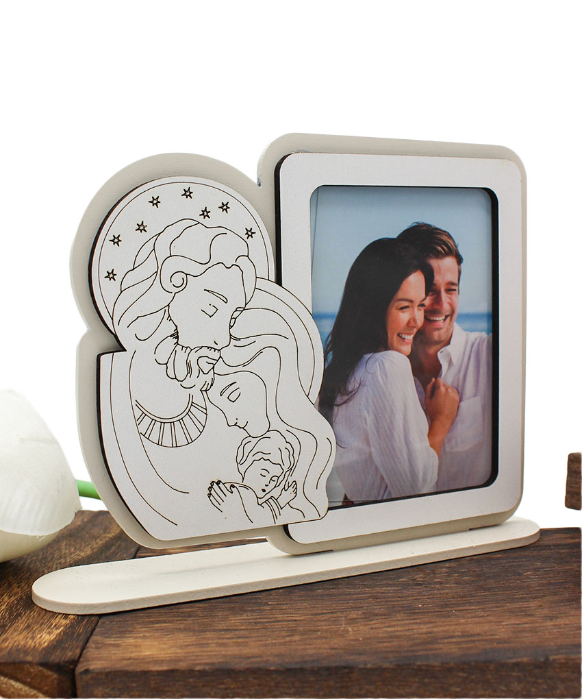Bomboniera Economica – Portafoto con Sacra Famiglia in Legno