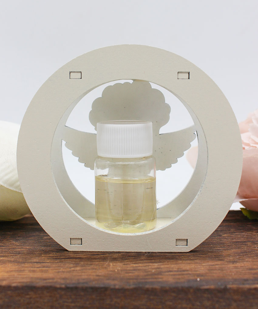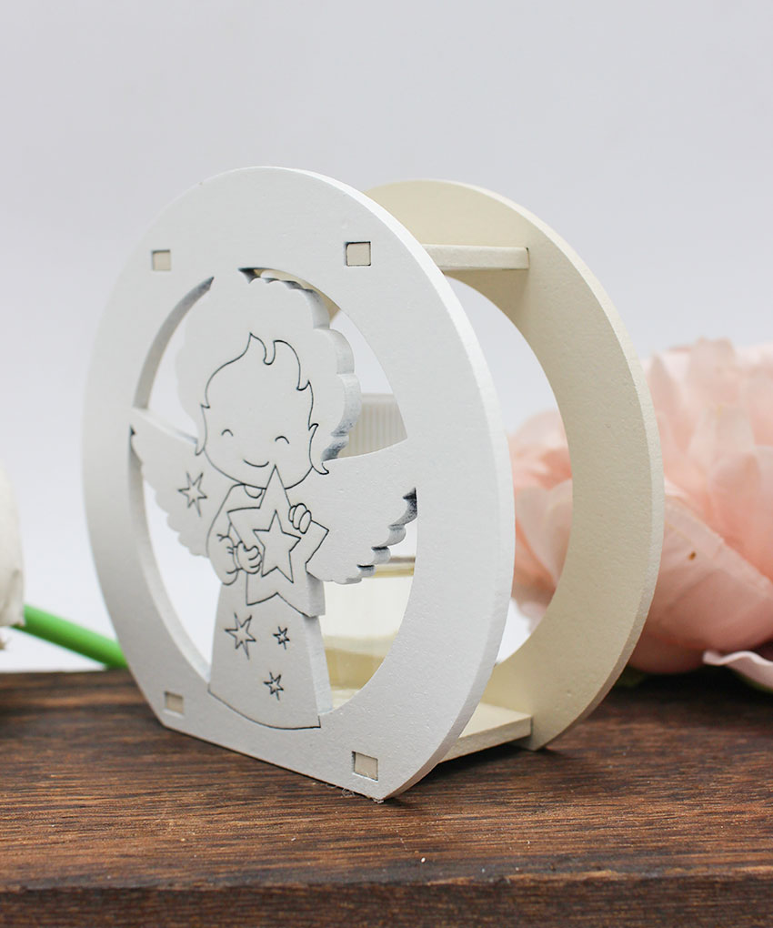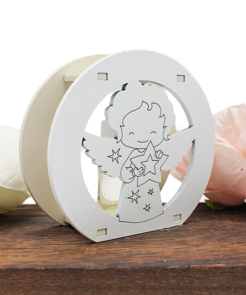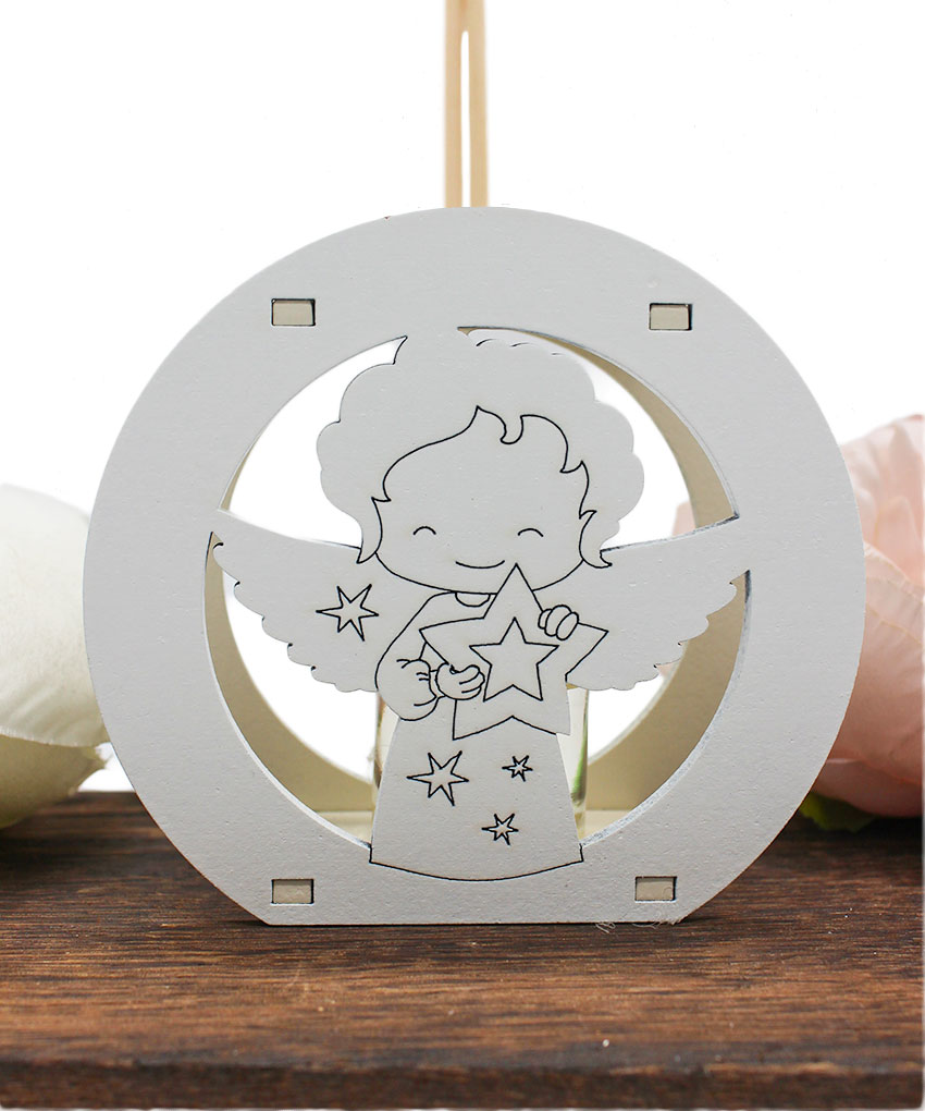 Tipologia: Profumatore per ambiente – Design: Angioletto – Materiale: Legno intagliato al laser – Colore: Beige