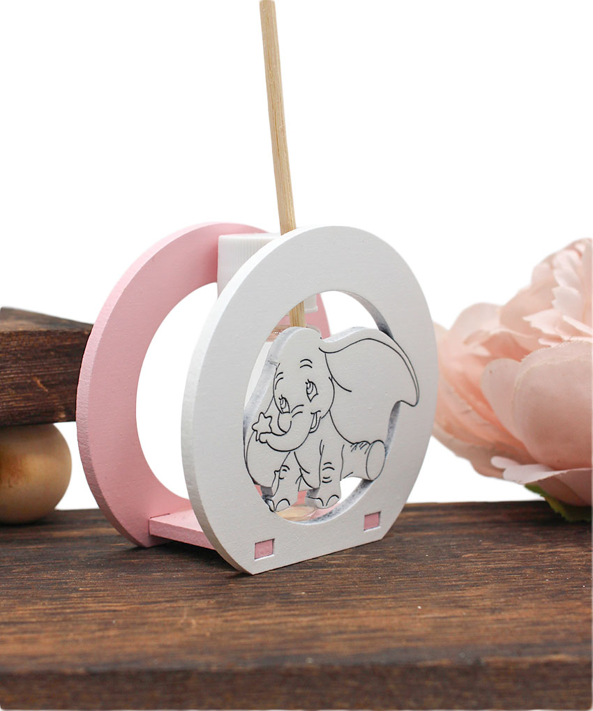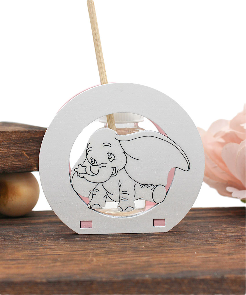 Tipologia: Profumatore per ambiente – Design: Elefantino Rosa – Materiale: Legno intagliato al laser – Colore: Bianco e Rosa