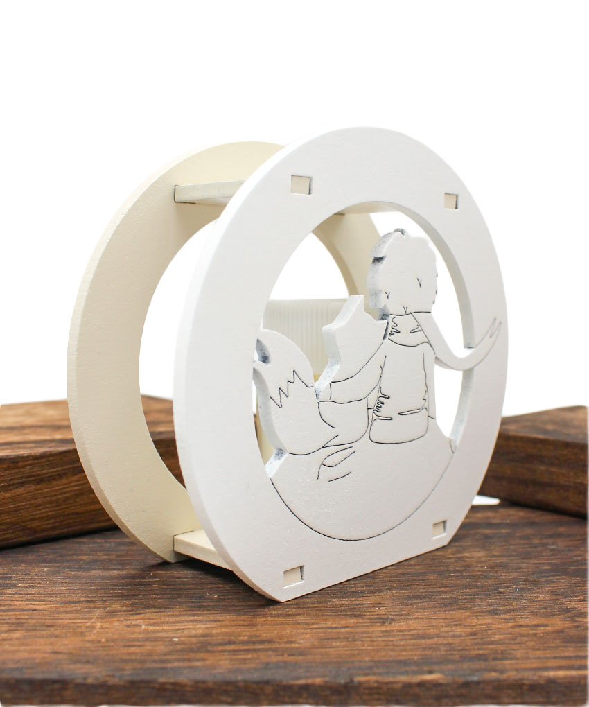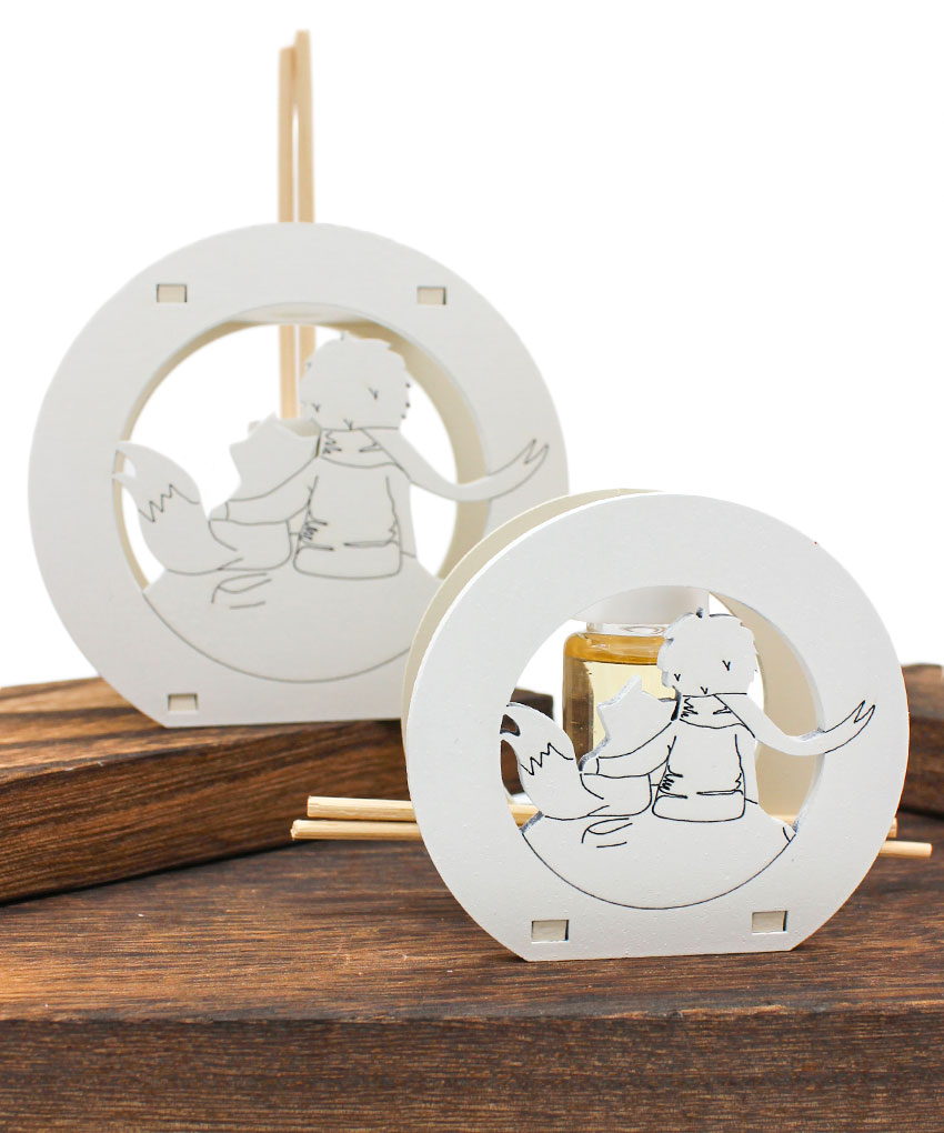 Tipologia: Profumatore per ambiente – Design: Piccolo Principe – Materiale: Legno intagliato al laser – Colore: Bianco e Beige