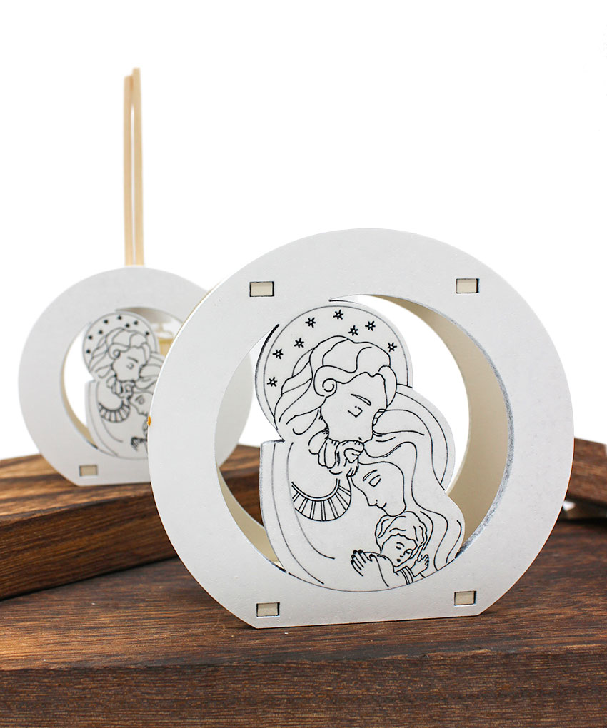 Bomboniera Economica – Profumatore “Sacra Famiglia” in Legno Beige