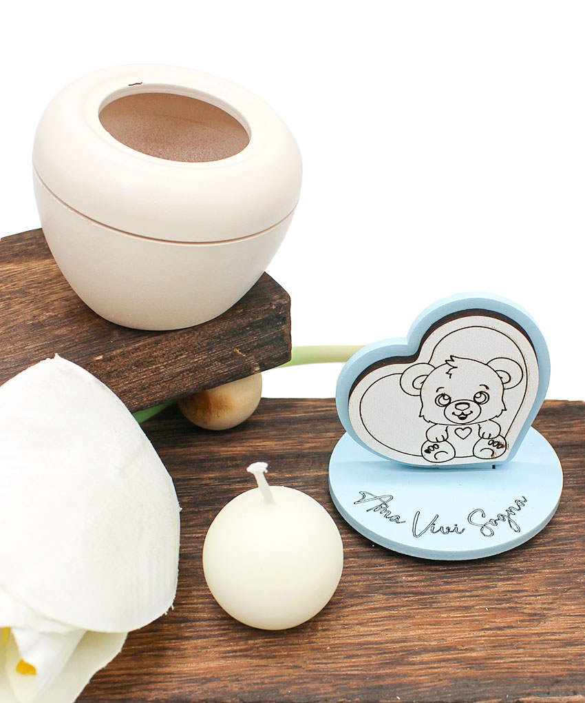 Cerchi un’idea originale e romantica per il tuo Bettesimo? La scatolina ovale portacandela con simbolo Orsetto Celeste è una bomboniera economica ma dal forte valore simbolico. Un piccolo dono che parla d’amore, perfetto per ringraziare i tuoi ospiti con un ricordo elegante e utile.