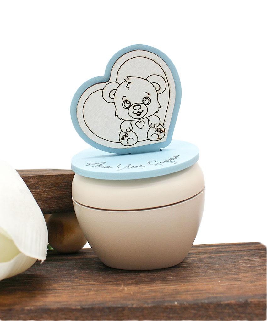 Bomboniera Economica – Scatolina Ovale Portacandela con Simbolo Orsetto Celeste