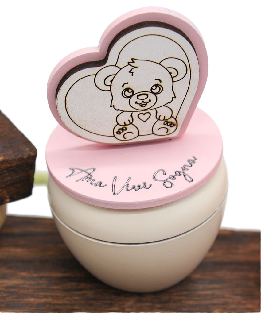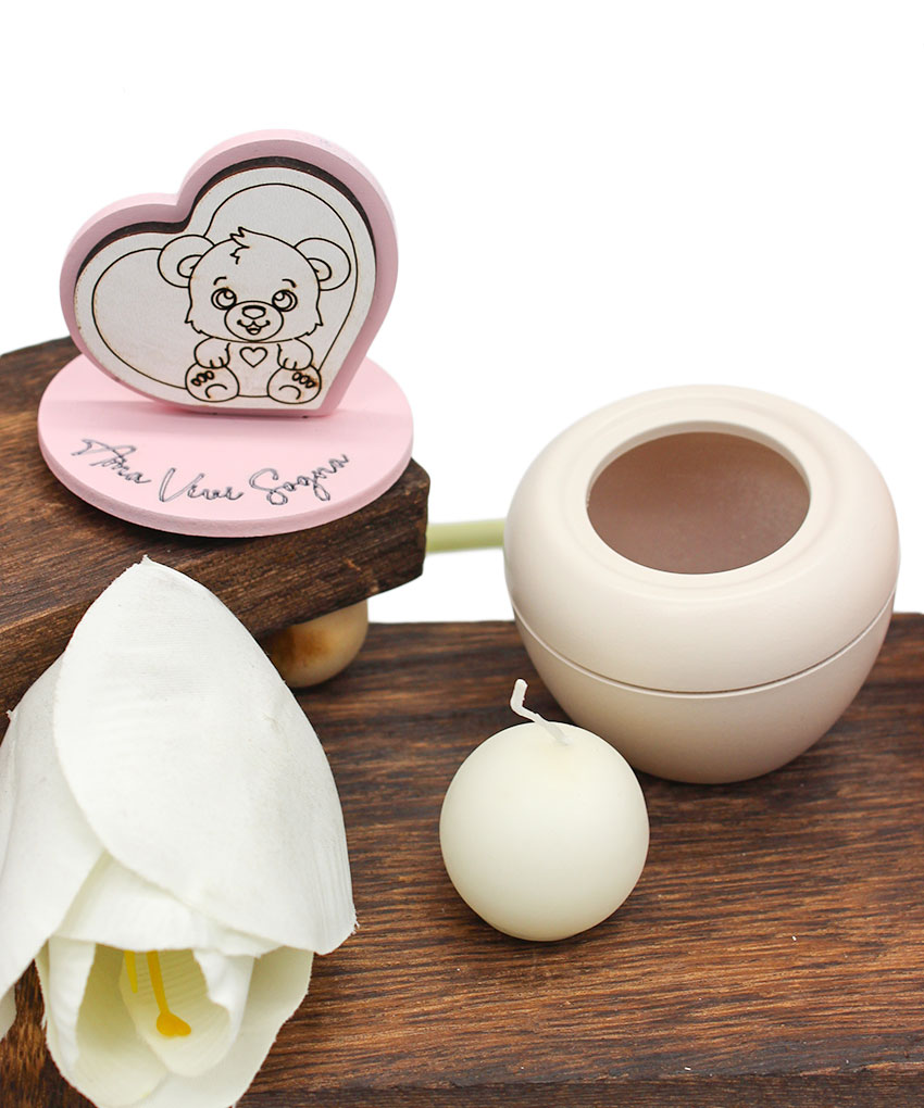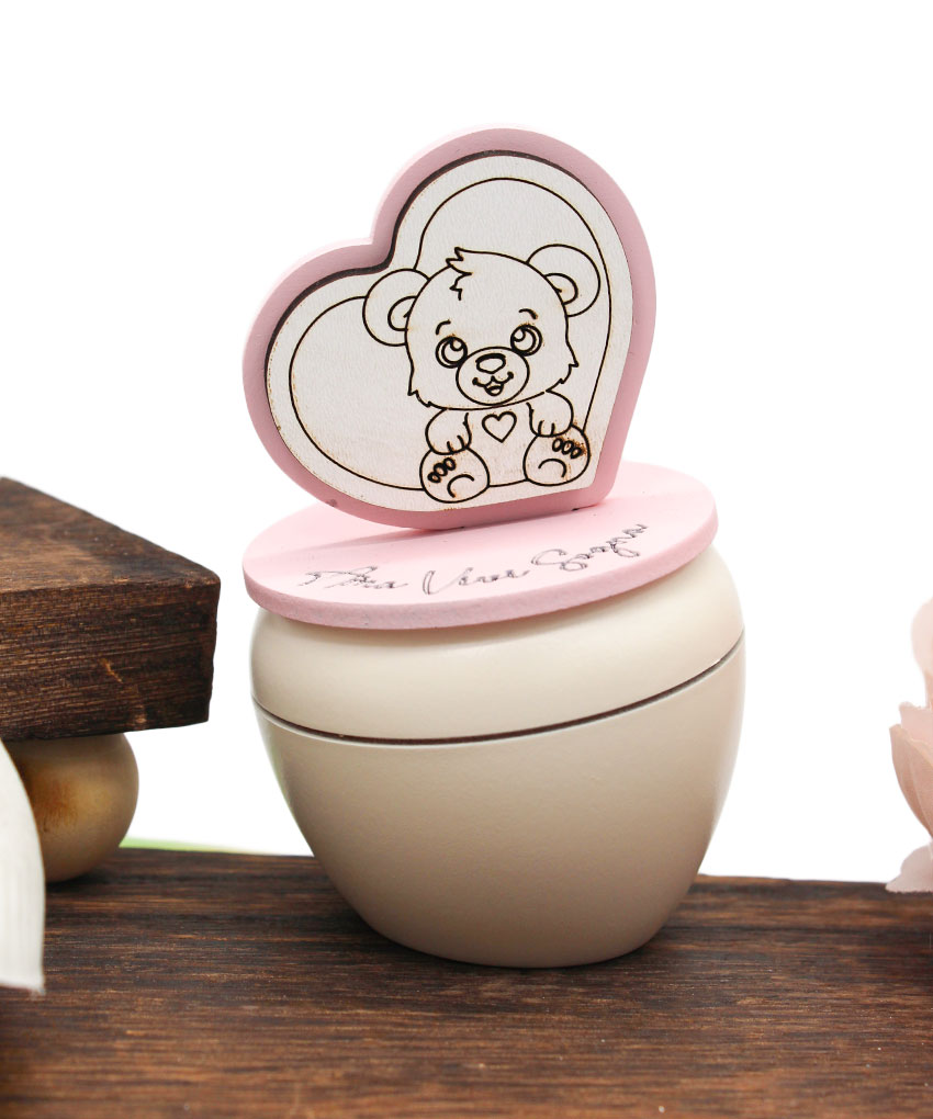 Bomboniera Economica – Scatolina Ovale Portacandela con Simbolo Orsetto Rosa