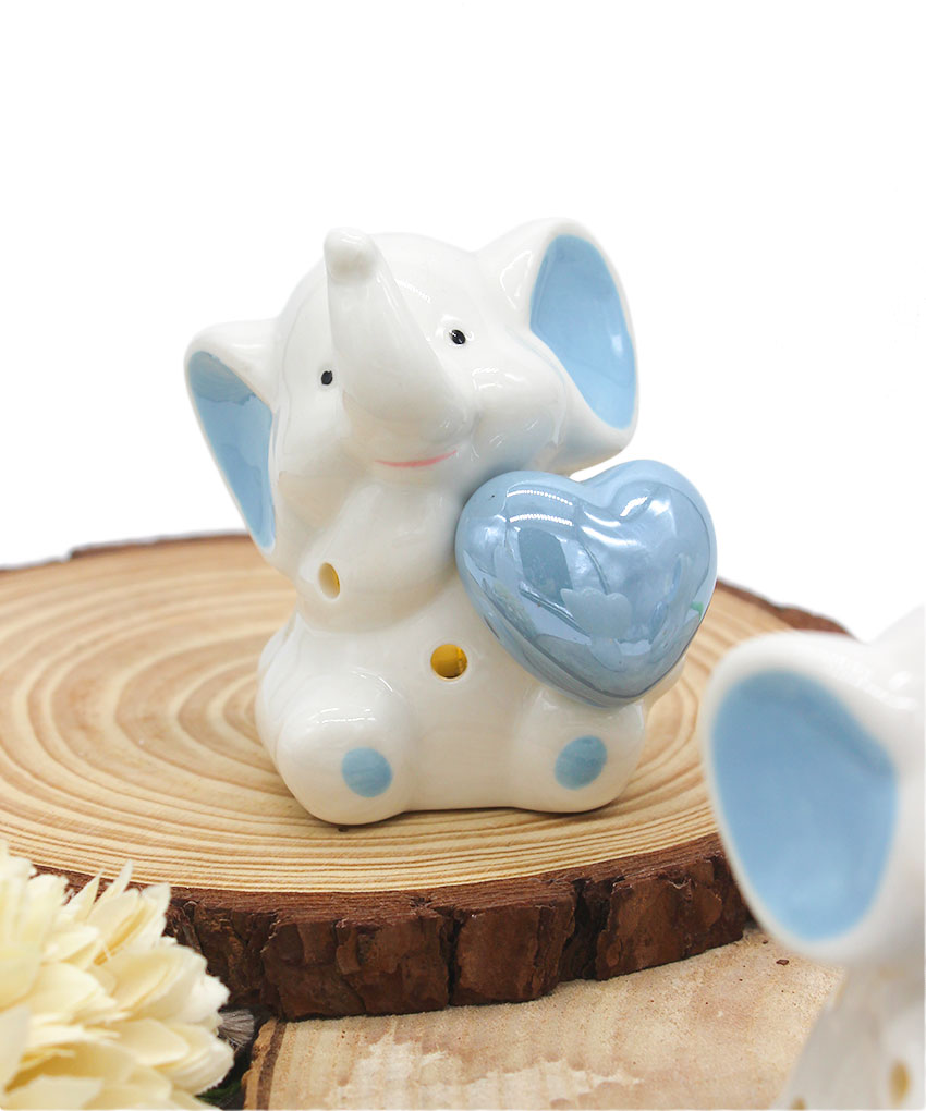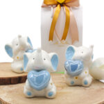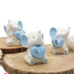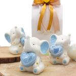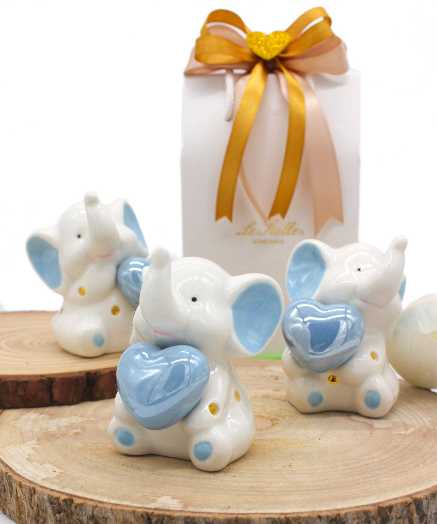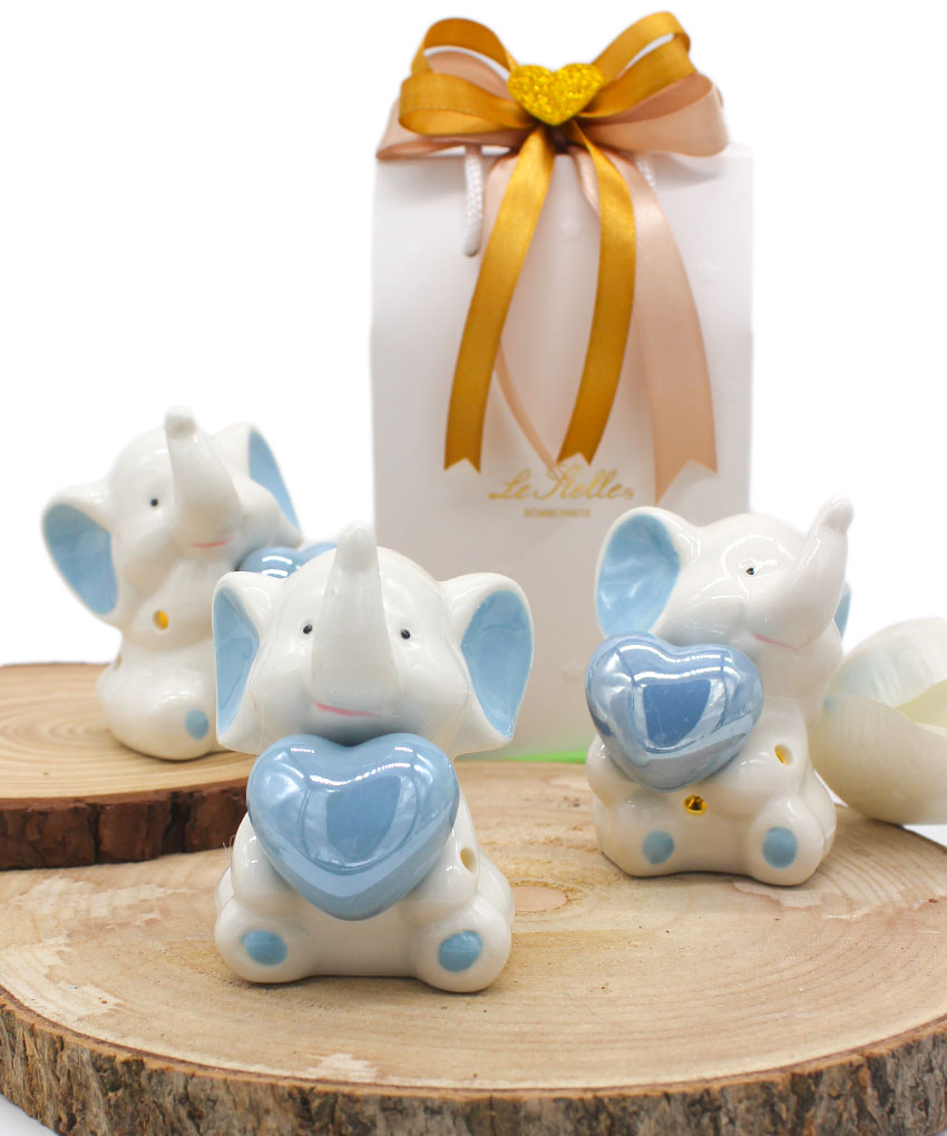 Bomboniera Elefantino Porcellana LED Celeste – 3 Modelli Assortiti – Confezione Omaggio