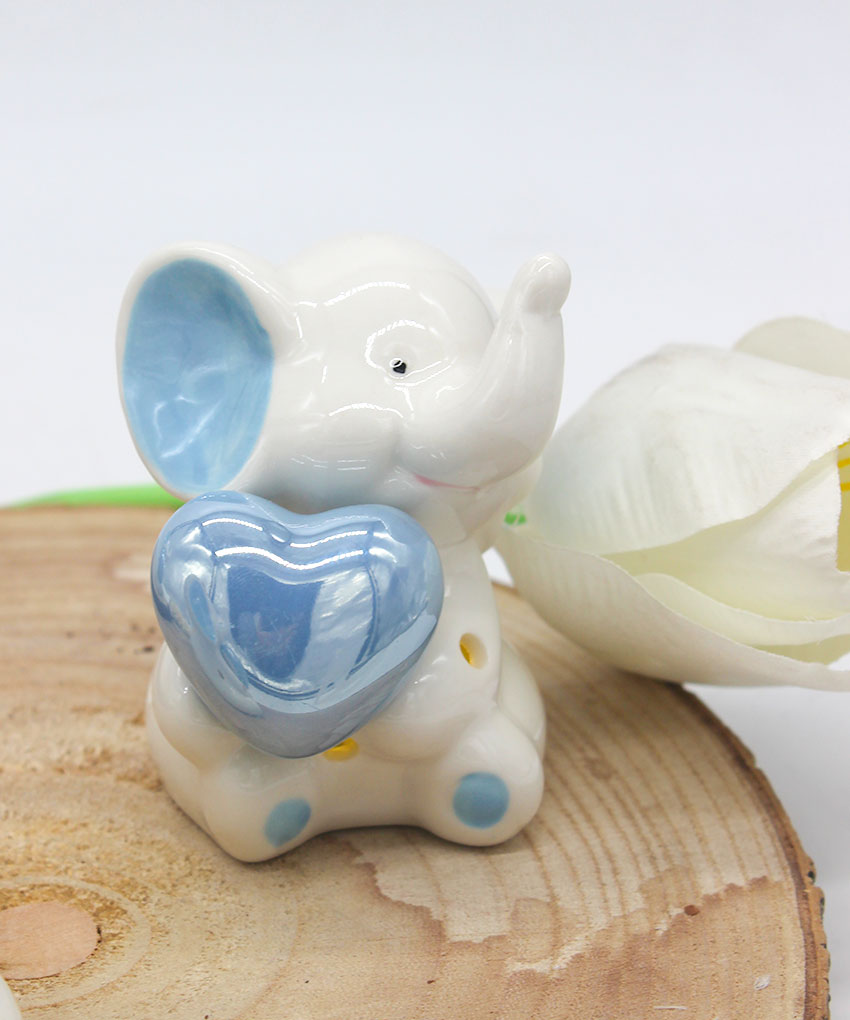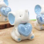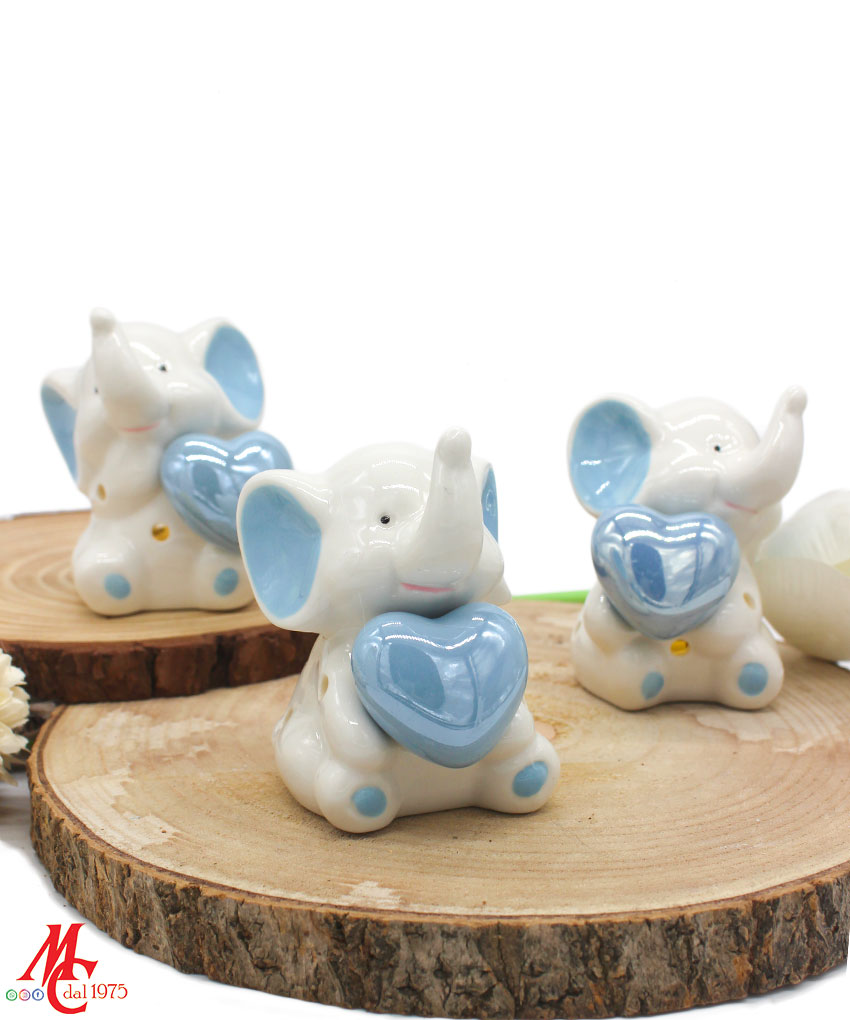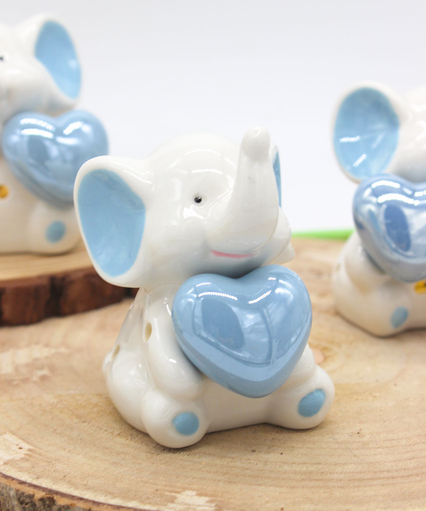 Bomboniera Elefantino Porcellana LED Celeste – 3 Modelli Assortiti