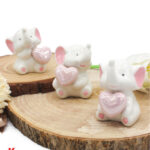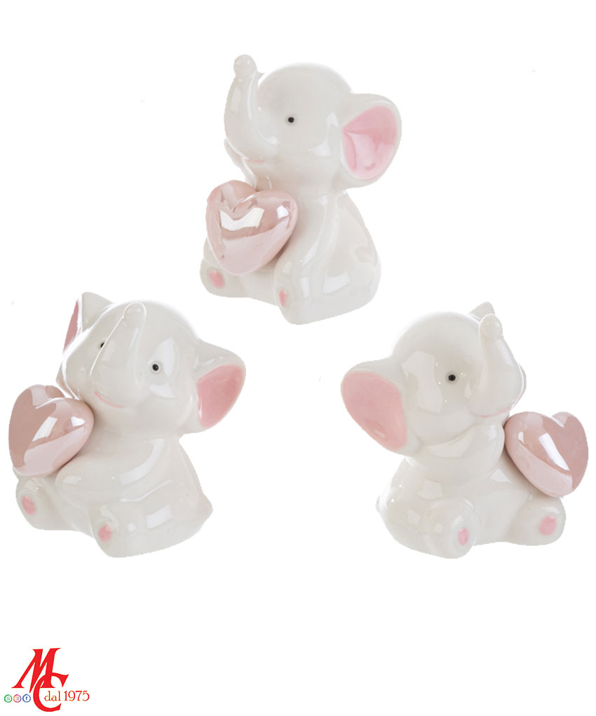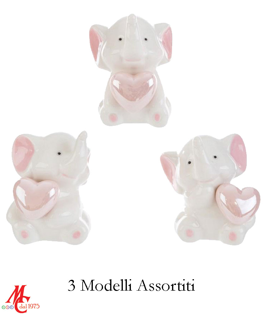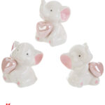 Bomboniera Elefantino Porcellana Rosa – 3 Posizioni Assortite – 5×h.6,5 cm