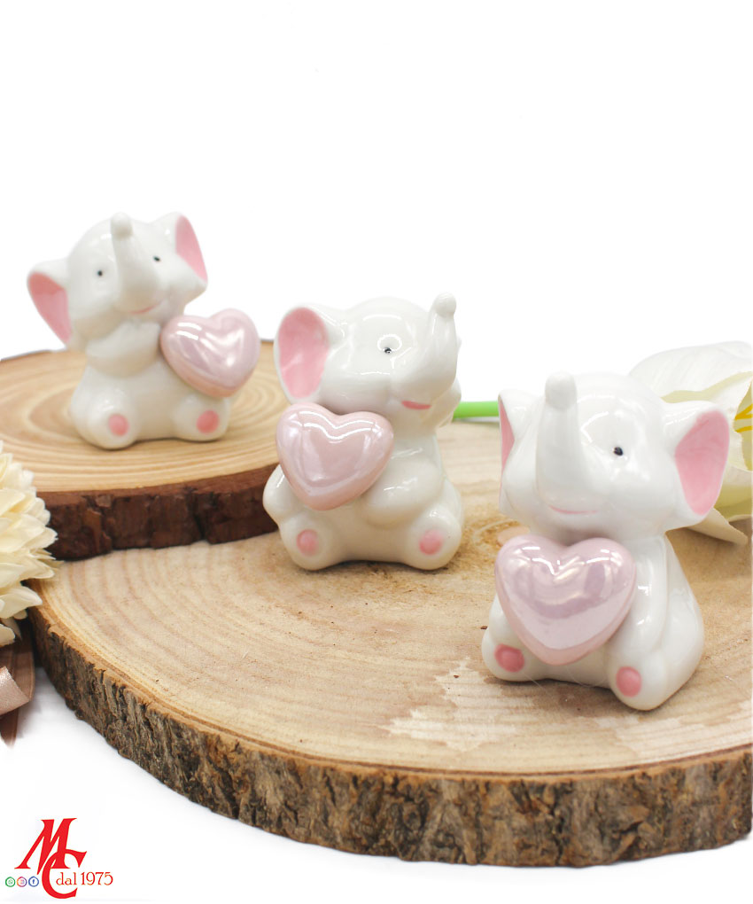 Bomboniera Elefantino porcellana Rosa – 3 Posizioni Assortite