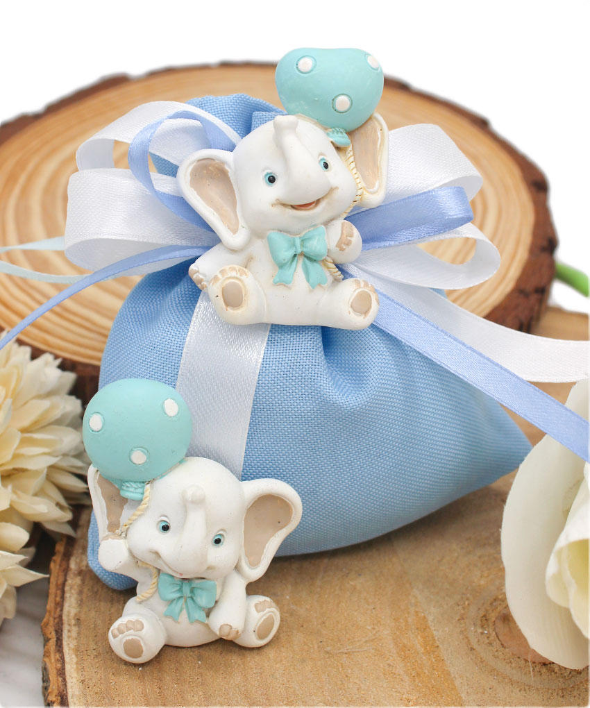 Bomboniera Elefantino in Resina Calamita Celeste – 2 Assortimenti