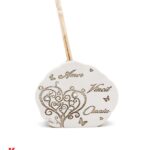 Bomboniera Profumatore con Albero della Vita a Forma di Cuore – Incisione “Amor Vincit Omnia” – Polvere di Marmo, Colore Bianco, Misure 9×7 cm