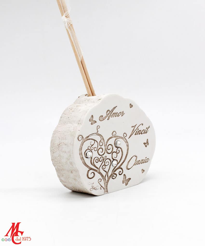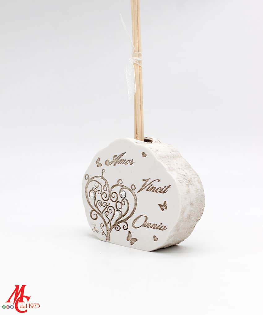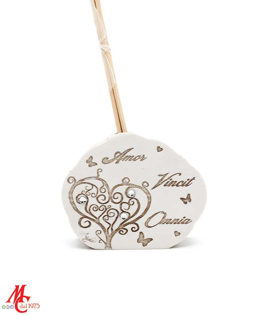 Bomboniera Profumatore con Albero della Vita a Forma di Cuore – Incisione “Amor Vincit Omnia”