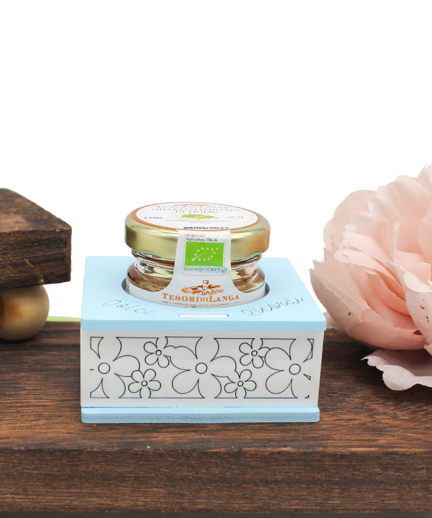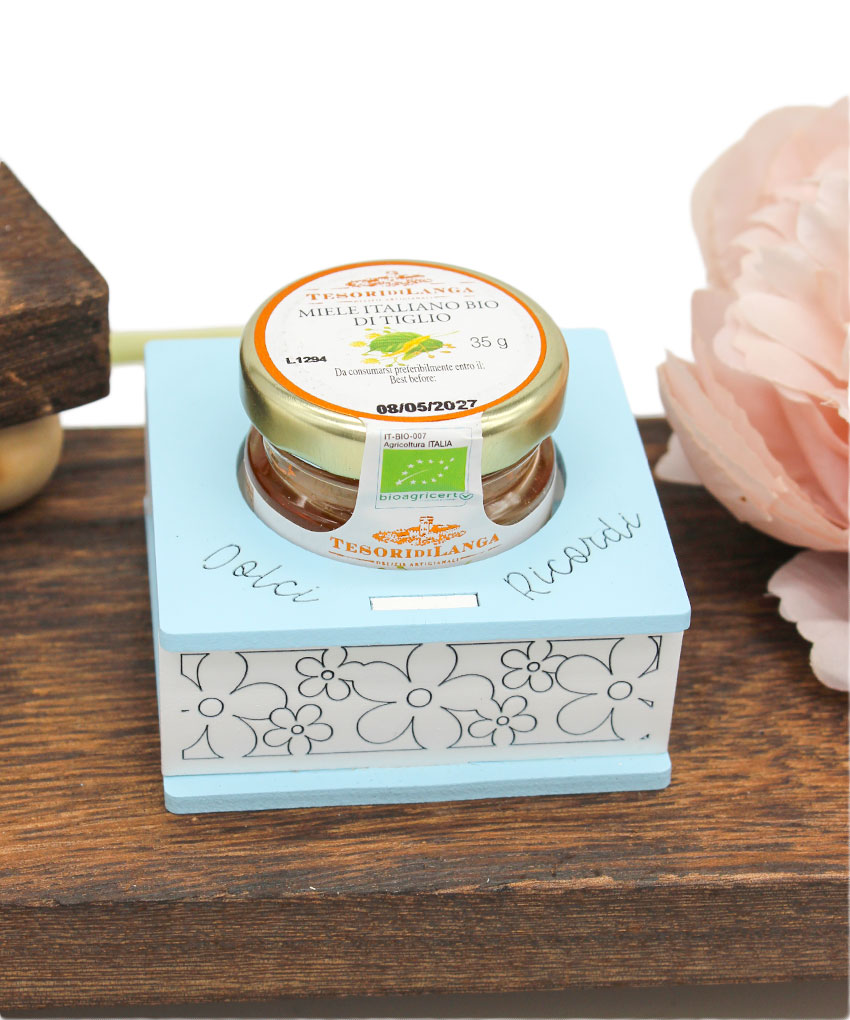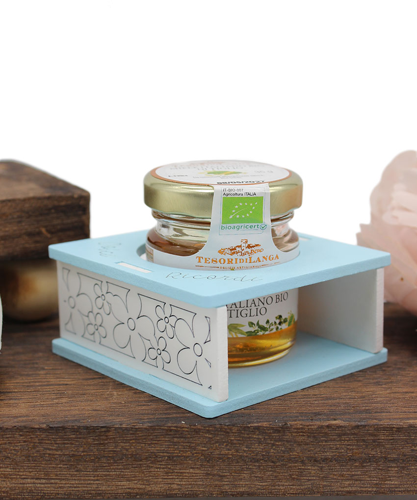 Bomboniera Enogastronomica Porta Marmellatina o Miele – 1 Scomparto in Legno – Celeste