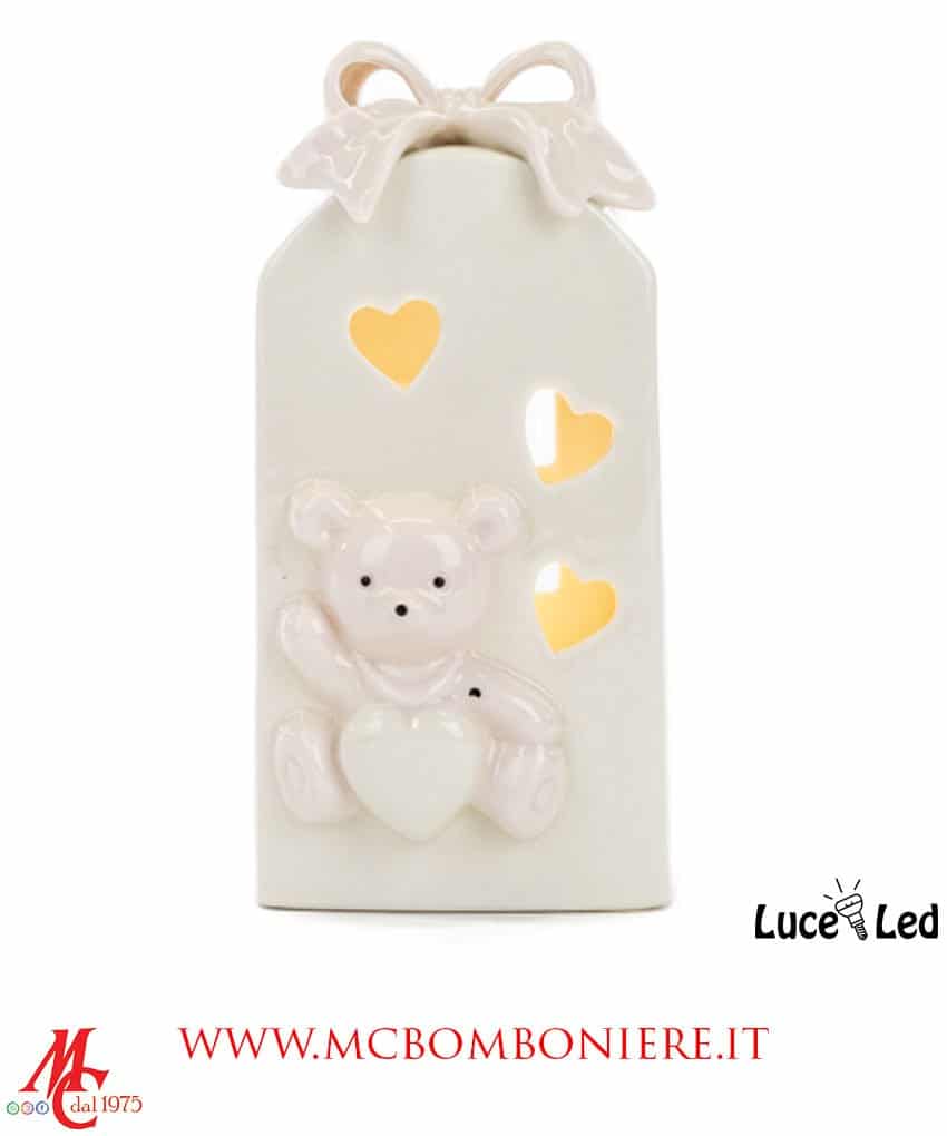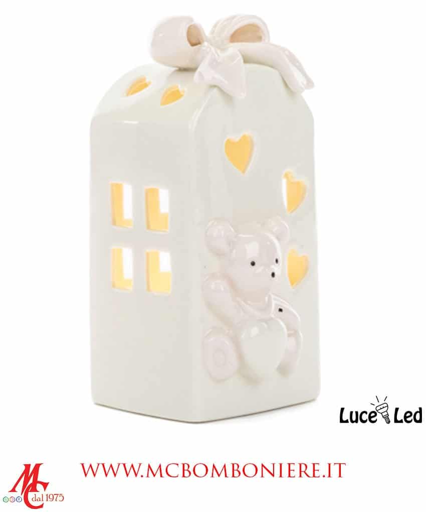 Bomboniera – Gabbietta Orsetto Porcellana Rosa – Led