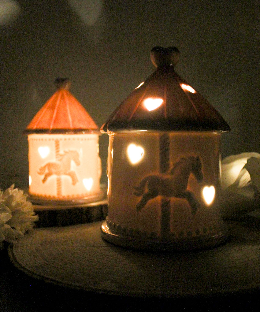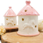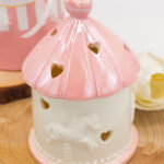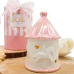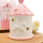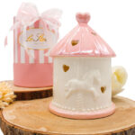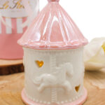 Raffinatezza senza tempo e un tocco di dolcezza si fondono in questa giostrina LED in porcellana rosa, pensata per celebrare con eleganza i momenti più teneri. Con il suo design curato e illuminazione soffusa, è la scelta perfetta come bomboniera per nascita o battesimo.