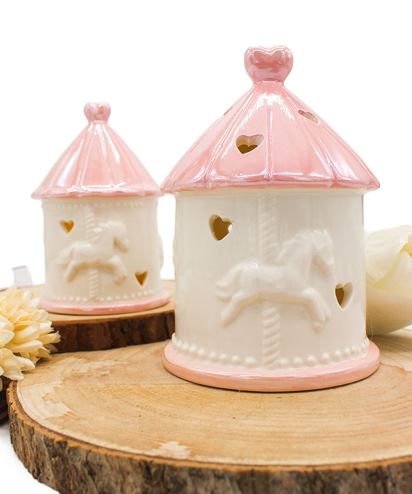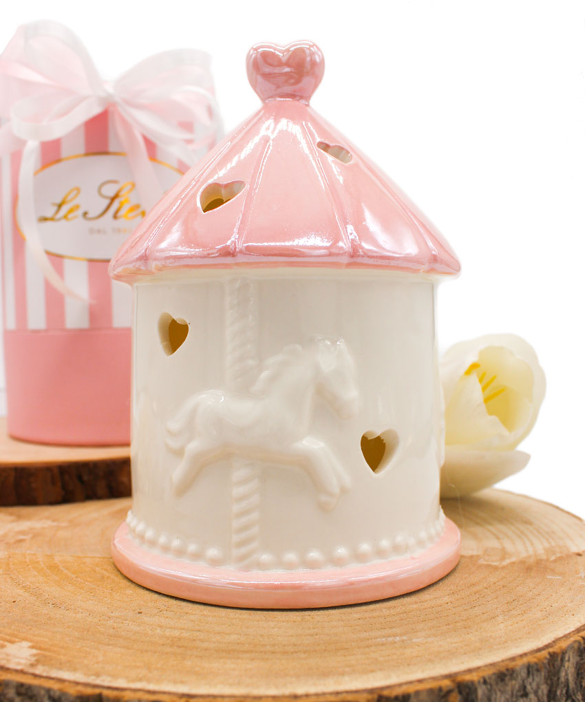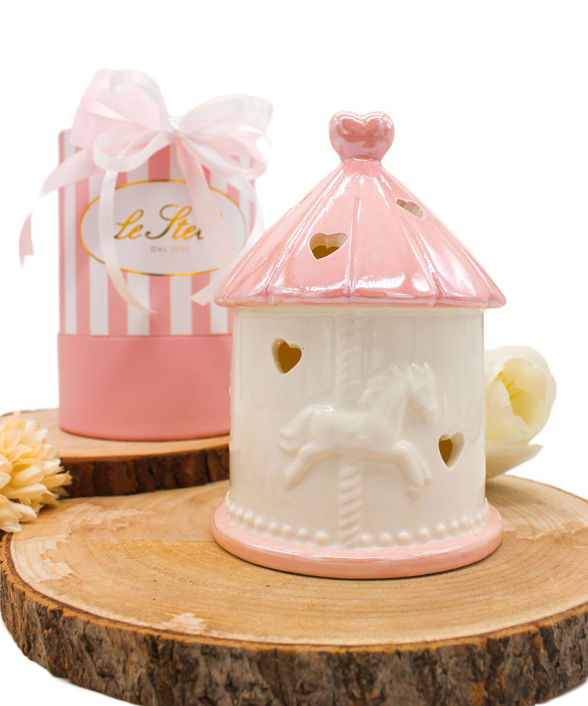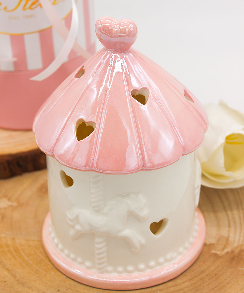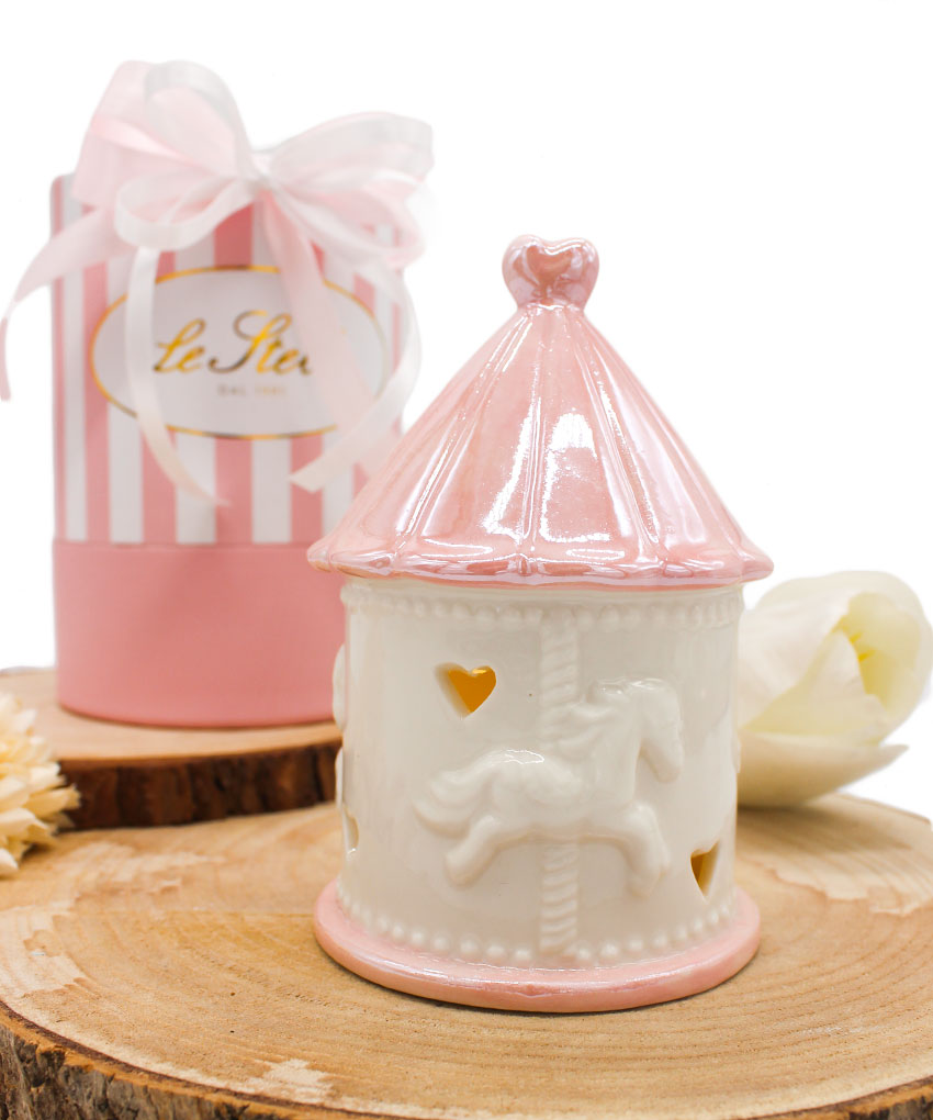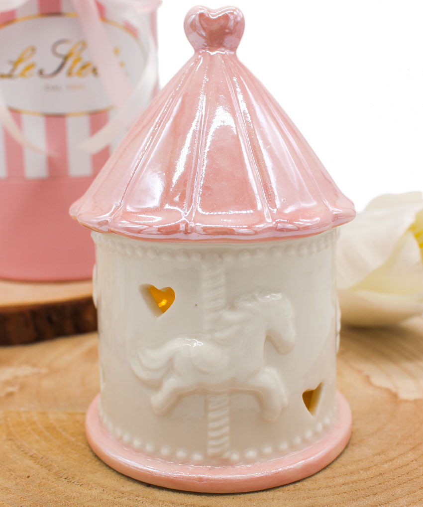 Bomboniera Giostrina LED in Porcellana Rosa