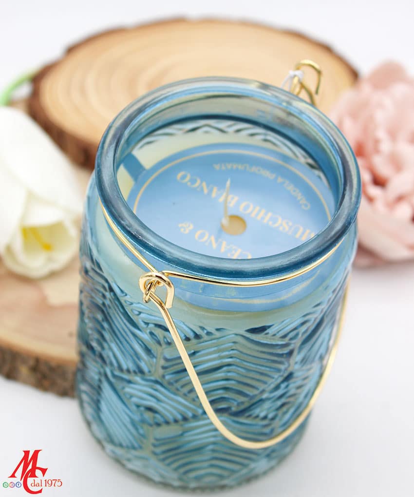 Aggiungi un tocco di freschezza e serenità al tuo ambiente con la nostra esclusiva Bomboniera Lanterna Candela Profumata Oceano & Muschio Bianco. Realizzata con una fragranza rinfrescante di oceano e muschio bianco, questa candela in vasetto di vetro Blu porterà una sensazione di relax e tranquillità ovunque la posizioni. Completa di confezione regalo, è pronta per essere esposta o regalata a una persona cara.