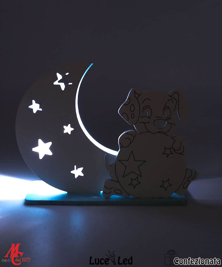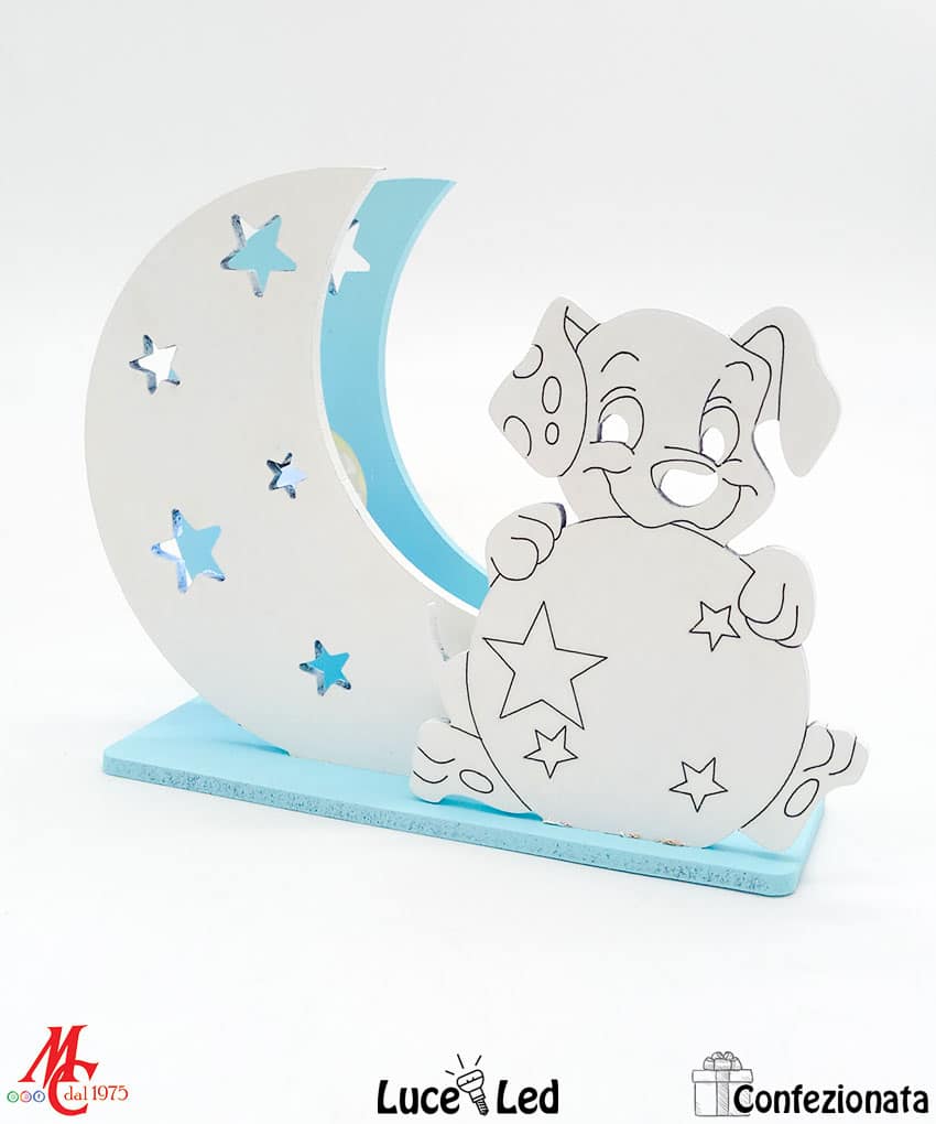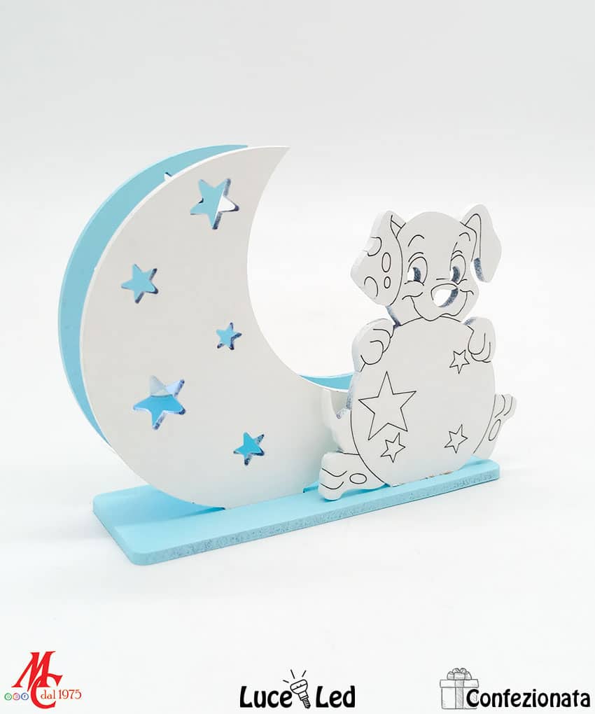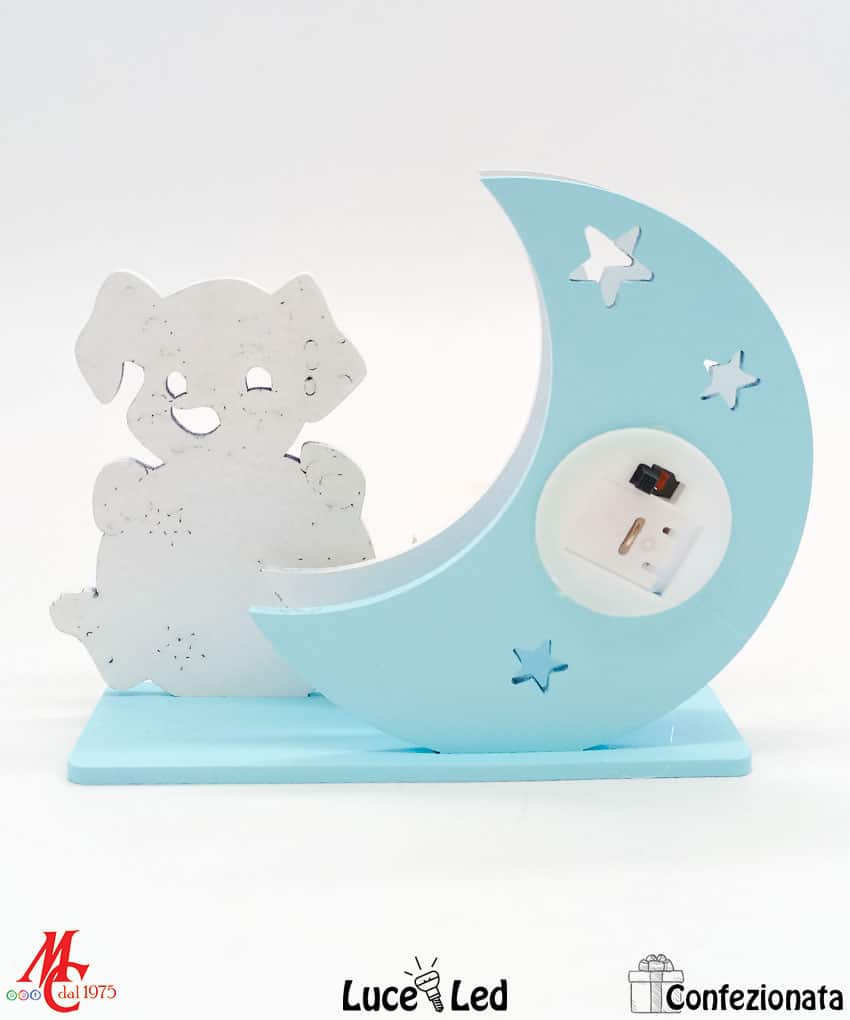 Bomboniera Confezionata –  Luna con Cagnolino celeste – luce led