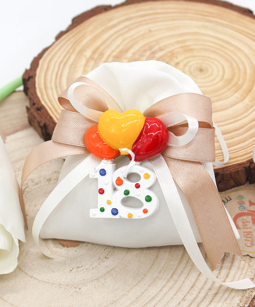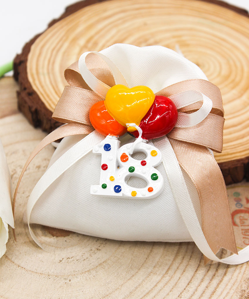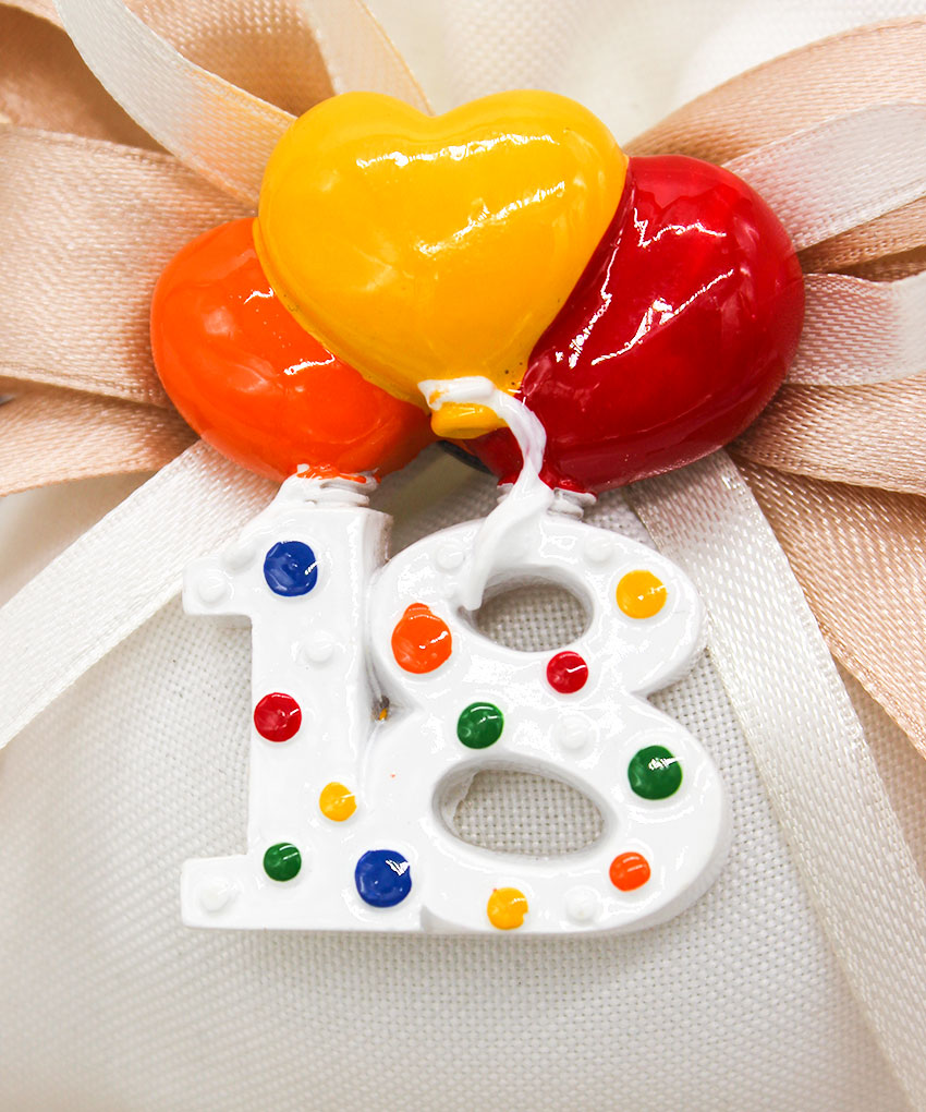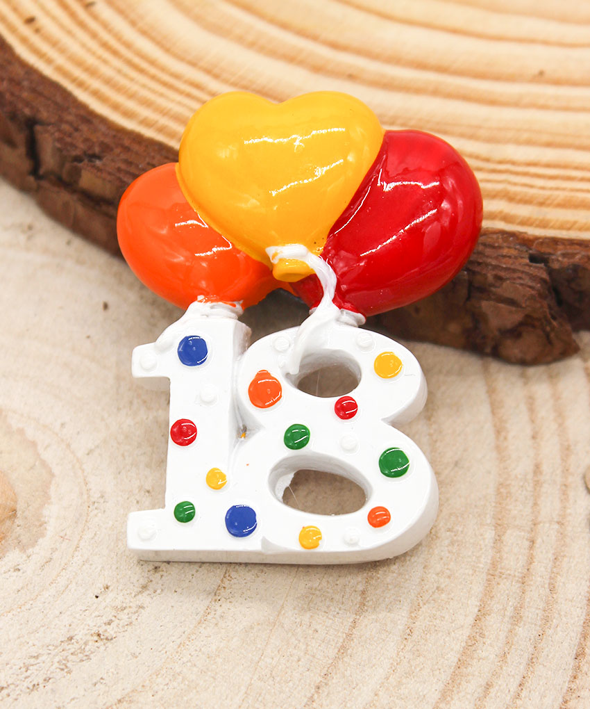 Bomboniera magnete 18 anni palloncini Materiale: Resina di alta qualità – Design: Numero 18 con palloncini colorati – Misure: 5,5 cm – Utilizzo: Magnete decorativo da attaccare su superfici metalliche – “Confezione non inclusa”.