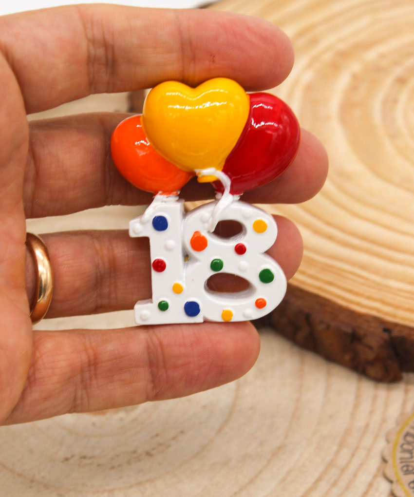 Magnete bomboniera 18 anni con palloncini colorati in resina. Un ricordo perfetto per il tuo diciottesimo compleanno! Confezione acquistabile a parte.
