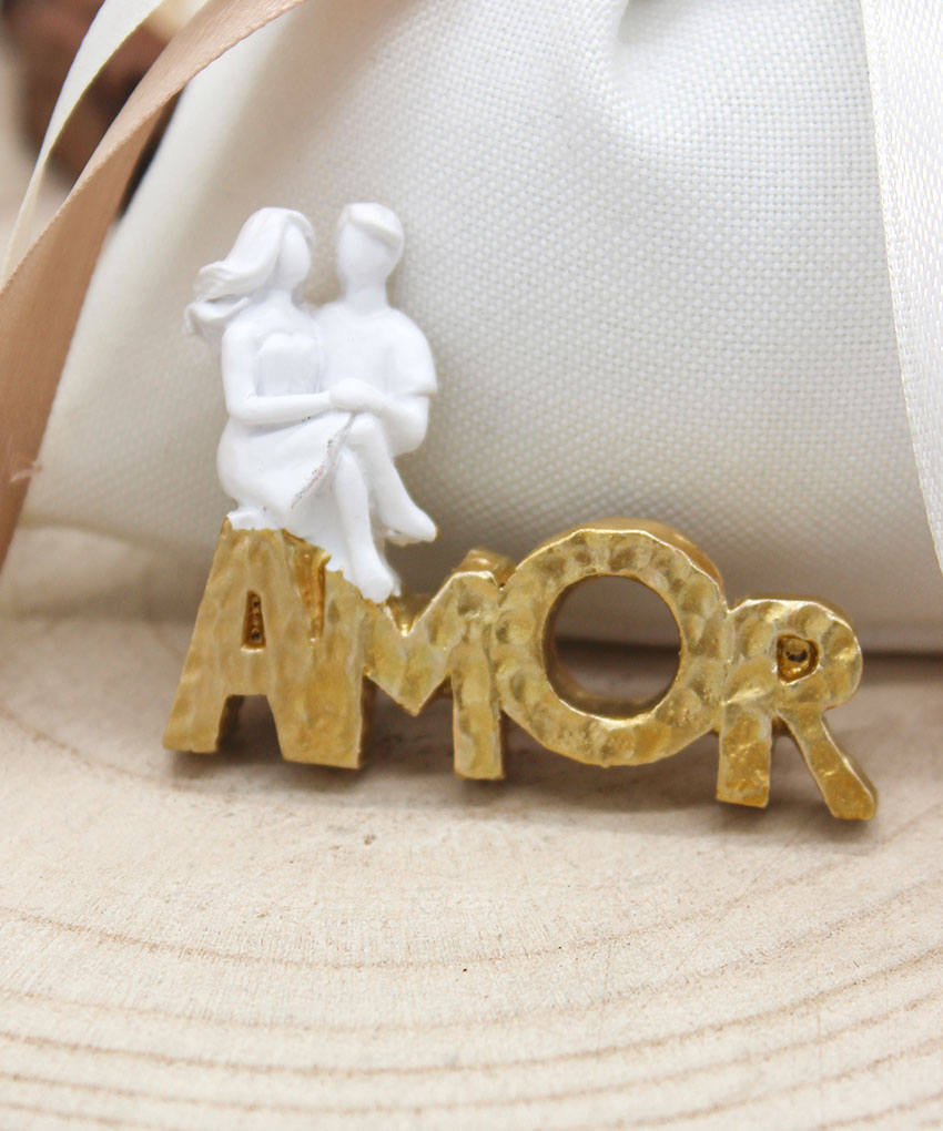 Bomboniera magnete in resina bianca e oro. Perfetta per matrimoni e anniversari. Confezione acquistabile a parte. Materiale: Resina di alta qualità – Colori: Bianco e oro – Dimensioni: 5 cm x 6 cm – Design: Due modelli assortiti con la scritta “Kiss” o “Amour” – Utilizzo: Magnete decorativo perfetto per superfici metalliche