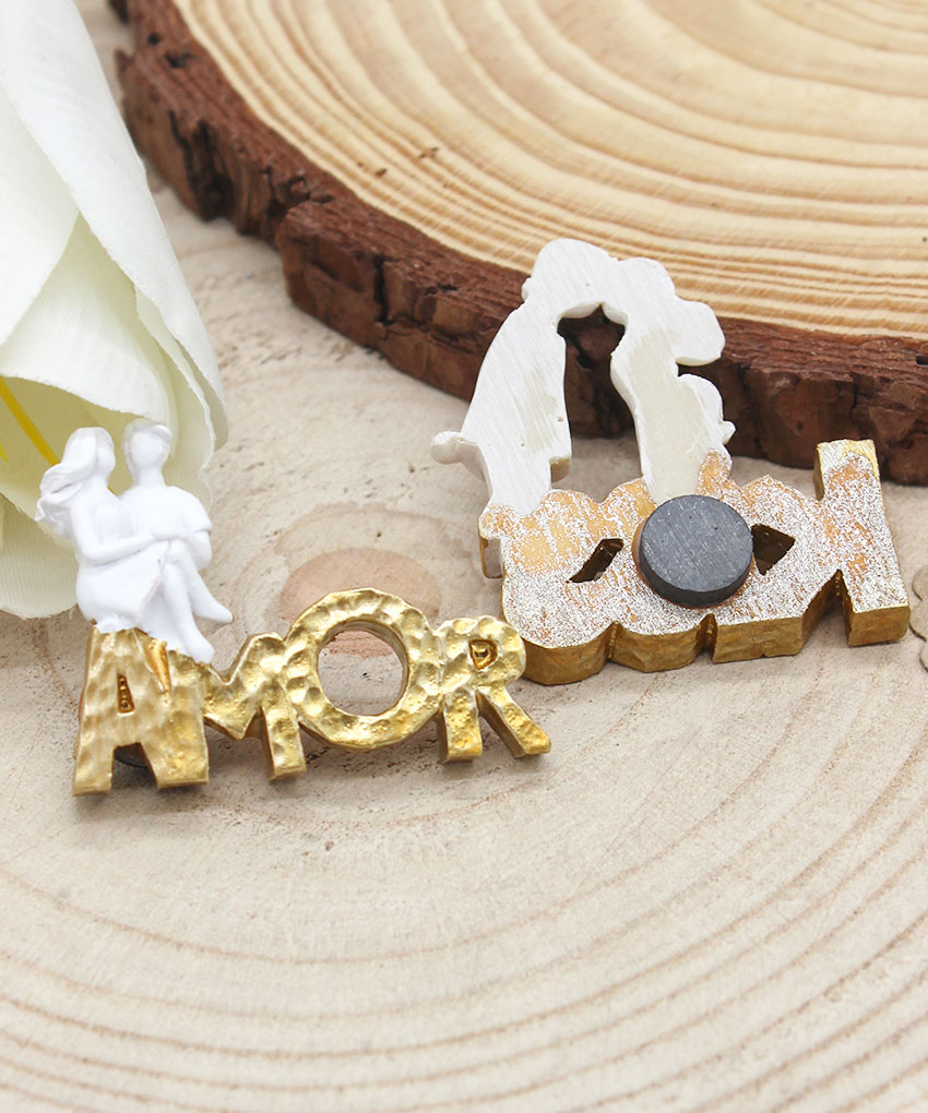 Bomboniera Magnete Coppia con Frasi “Kiss” o “Amour” – Simbolo di Amore ed Eleganza