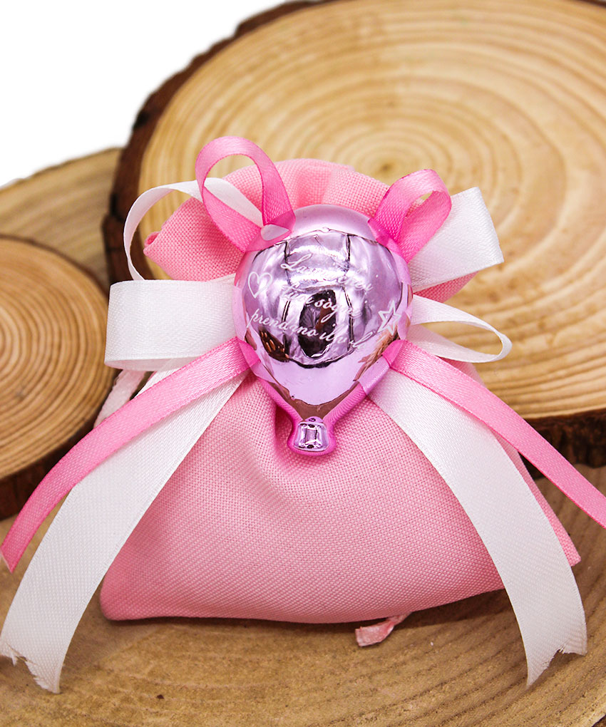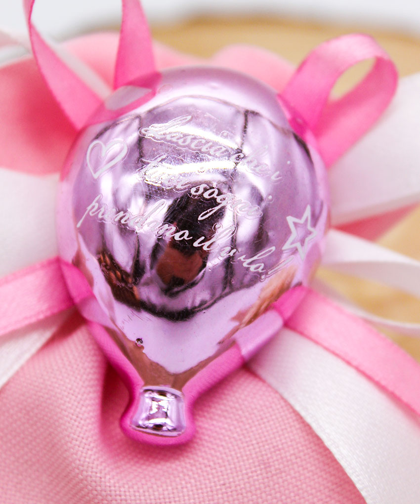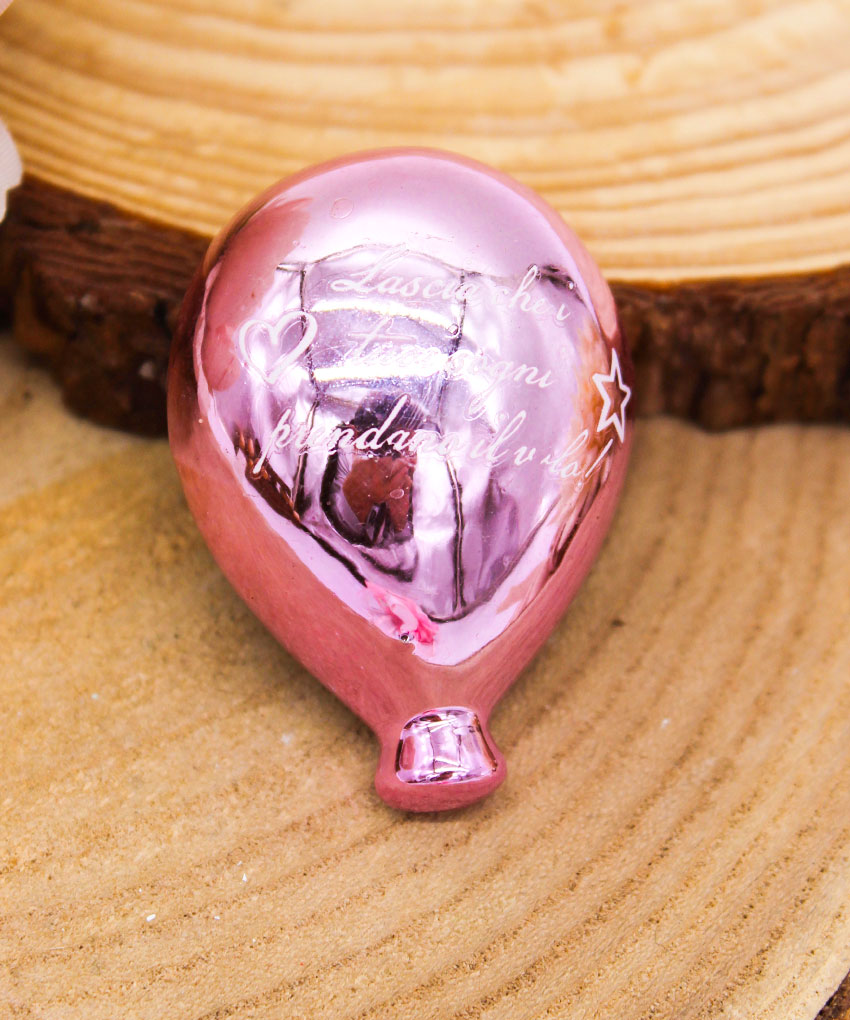 Bomboniera Magnete Palloncino in Porcellana Rosa Effetto Specchiato con Frase