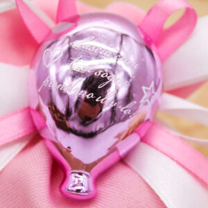 Il design moderno a forma di palloncino, impreziosito dalla finitura lucida specchiata, dona luminosità e raffinatezza, rendendo questa bomboniera ideale per eventi come nascita, battesimo, comunione o compleanni.
