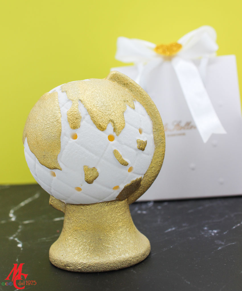 Bomboniera Mappamondo LED in Porcellana Oro con Confezione